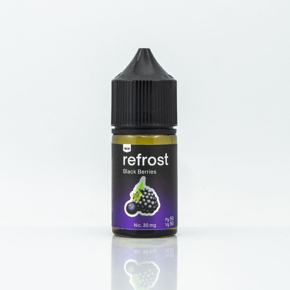 Refrost Salt Black Berries 30ml 30mg - рідина на сольовому нікотині зі смаком міксу ожини та чорної смородини з легкою кислинкою на видиху.