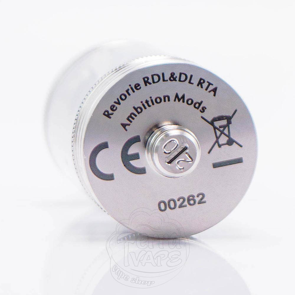 Revorie RDL&DL RTA - це обслуговуваний атомайзер під обмежену (RDL) та вільну (DTL) затяжку від компанії Ambition Mods. Добре спроектована дека розрахована на одну спіраль та має діаметр 23мм. Обдув нижній та регулюється завдяки жиклерам. Місткість резервуару складає 5мл, а заправка у бака верхня.