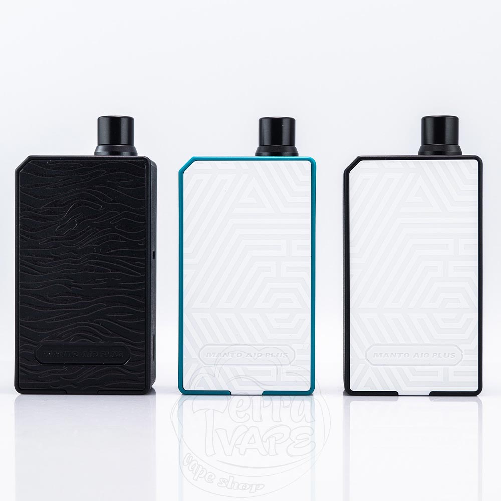 Зовнішнє цей вейп нагадує ігрову консоль. Кнопка Fire виконана у чорному кольорі з яскравим кольоровим обведенням. У нижній частині пристрою є дві кнопки управління продовгуватої форми - "+" та "-". На виступаючій частині знімної панелі нанесено акуратне брендування " Manto AIO Plus ". Вгорі електронної сигарети розташований 510 дріп-тип. Щоб встановити акумулятор та заправити бачок, вам потрібно підчепити знизу дверцята, які виступають задньою панеллю. На цих дверцятах нанесений візерунок, який трохи виступає і за рахунок цього приємний на дотик. Також знизу вигравіюваний напис " Manto AIO Plus ".