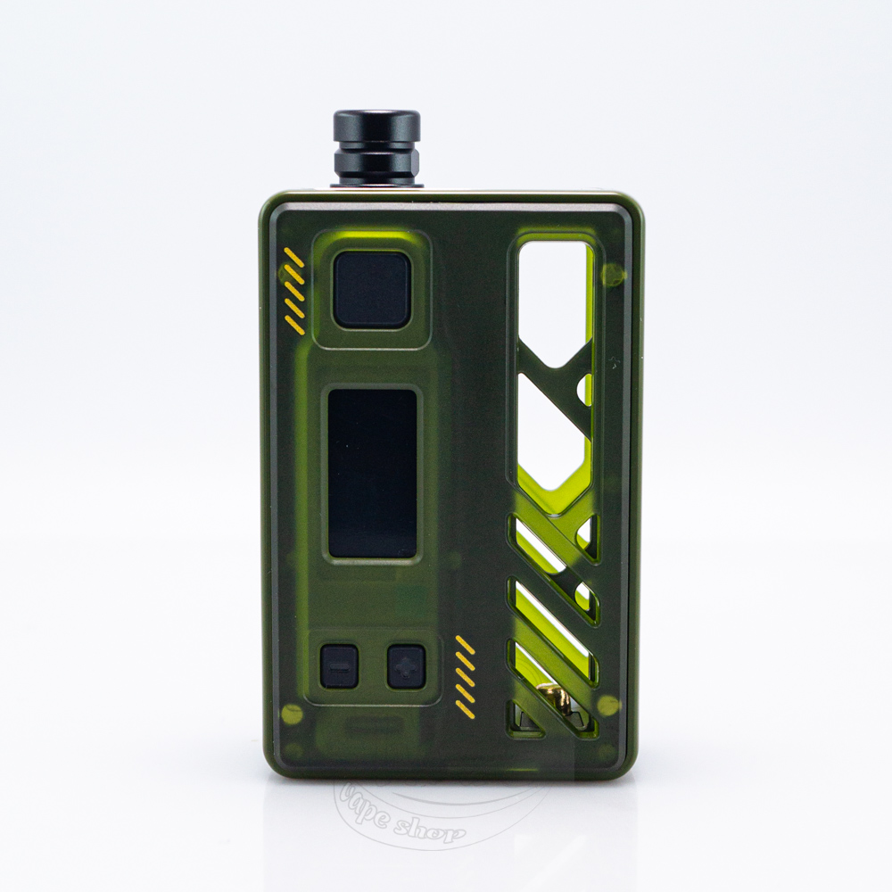 Електронна сигарета має доволі мінімалістичний, але при цьому яскравий дизайн. Вона представлена у класичному прямокутному форм-факторі, а розміри складають 80мм у висоту, 52.5мм у ширину та 26.6мм у глибину. Кути дещо згладжені, щоб девайс виглядав більш акуратно, а також був більш практичним у використанні. Панелі тримаються на магнітах, тому їх можна змінювати, тим самим змінюючи зовнішній вигляд пристрою на свій смак. На корпусі біля батарейного відсіку є багато вирізів, які роблять видимою більшу частину акумулятора.
