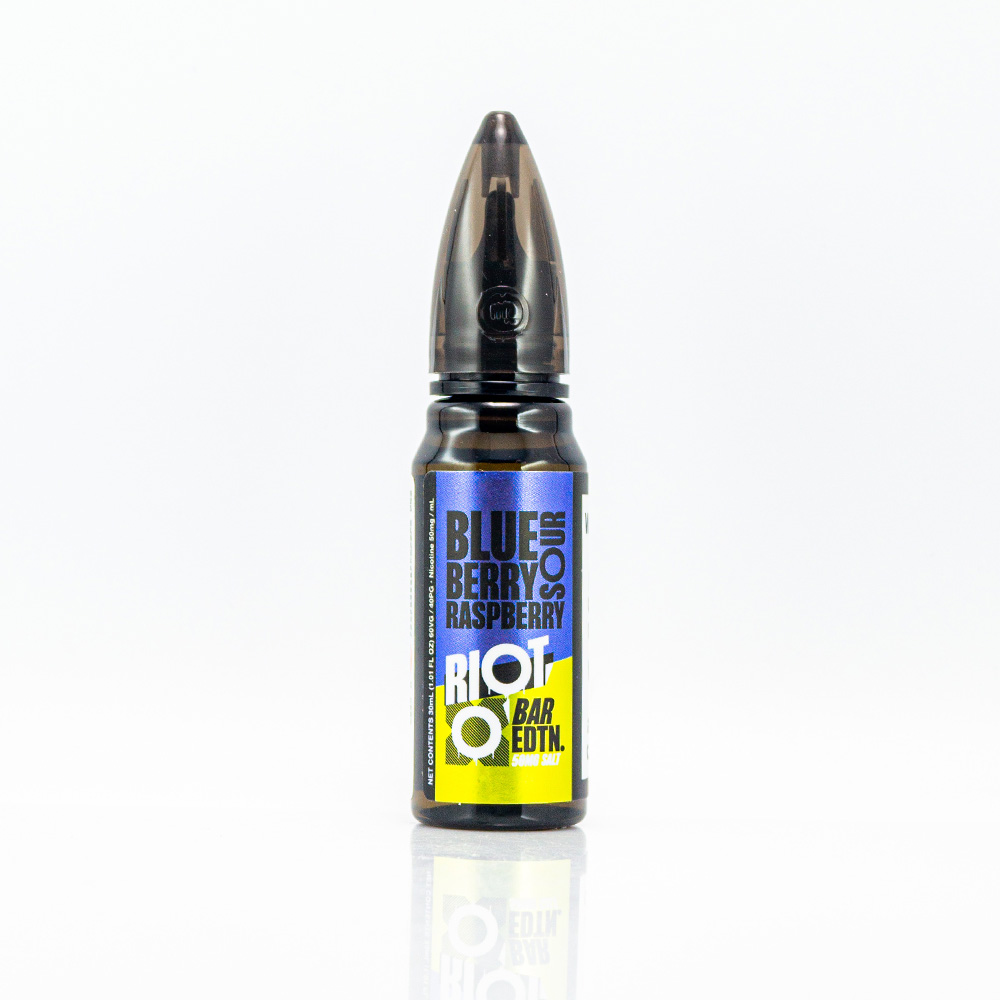 Riot Squad Salt Blueberry Sour Raspberry 30ml 25mg - це рідина на сольовому нікотині британського виробництва для pod-систем з ягідним смаком чорниці та кислої малини.