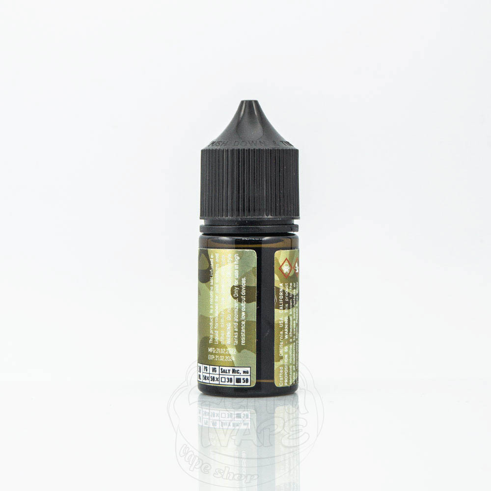 Salt Jar - це сольова рідина для малопотужних електронних сигарет або багаторазових pod-систем, розроблена американськими фахівцями у сфері вейпінгу з компанії California Vapor. Розлив у флакони 30мл відбувається в українських лабораторіях з використанням спеціального автоматизованого обладнання. Співвідношення пропілену до гліцерину - 50/50, а міцність сольового нікотину представлена у двох варіантах: