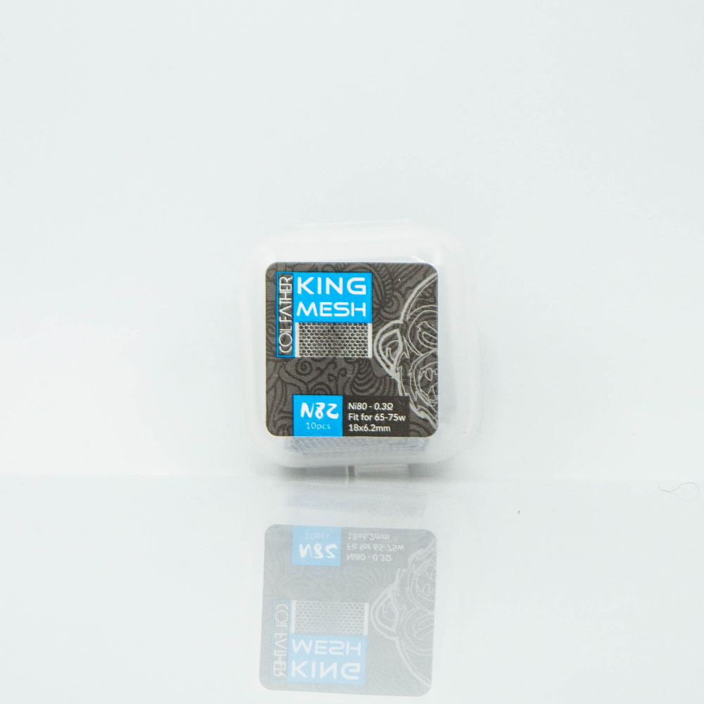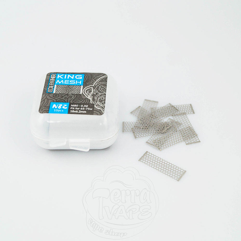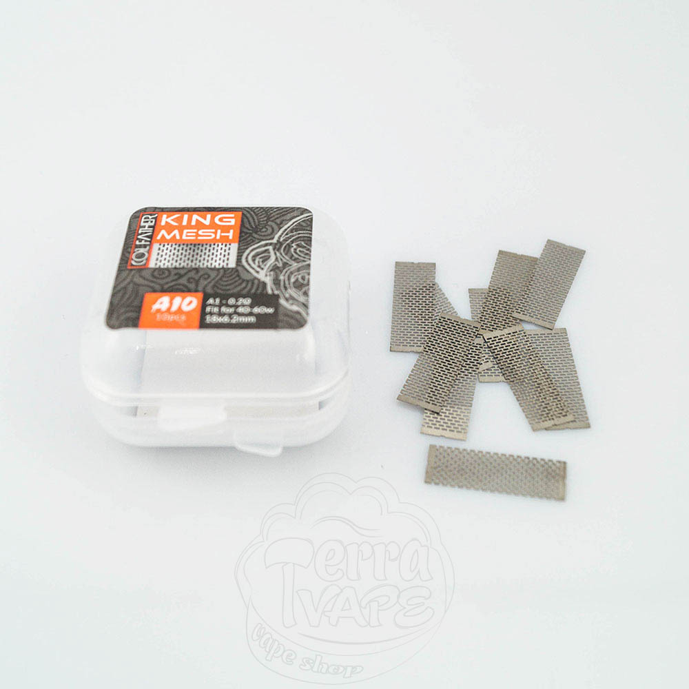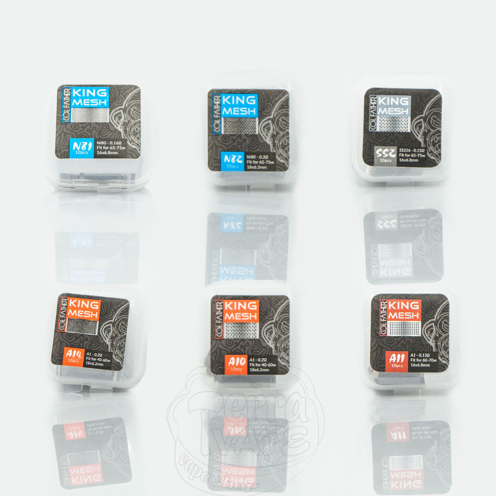 Сітка Coil Father King Mesh 10 штук - це сітка для обслуговування атомайзерів, що використовують відповідний тип нагрівального елемента. Поставляється в пластиковому кейсі на засувках, кожен містить 10 заготовок сітки.