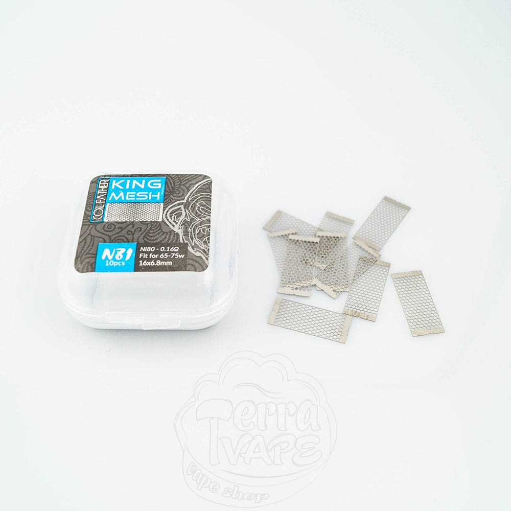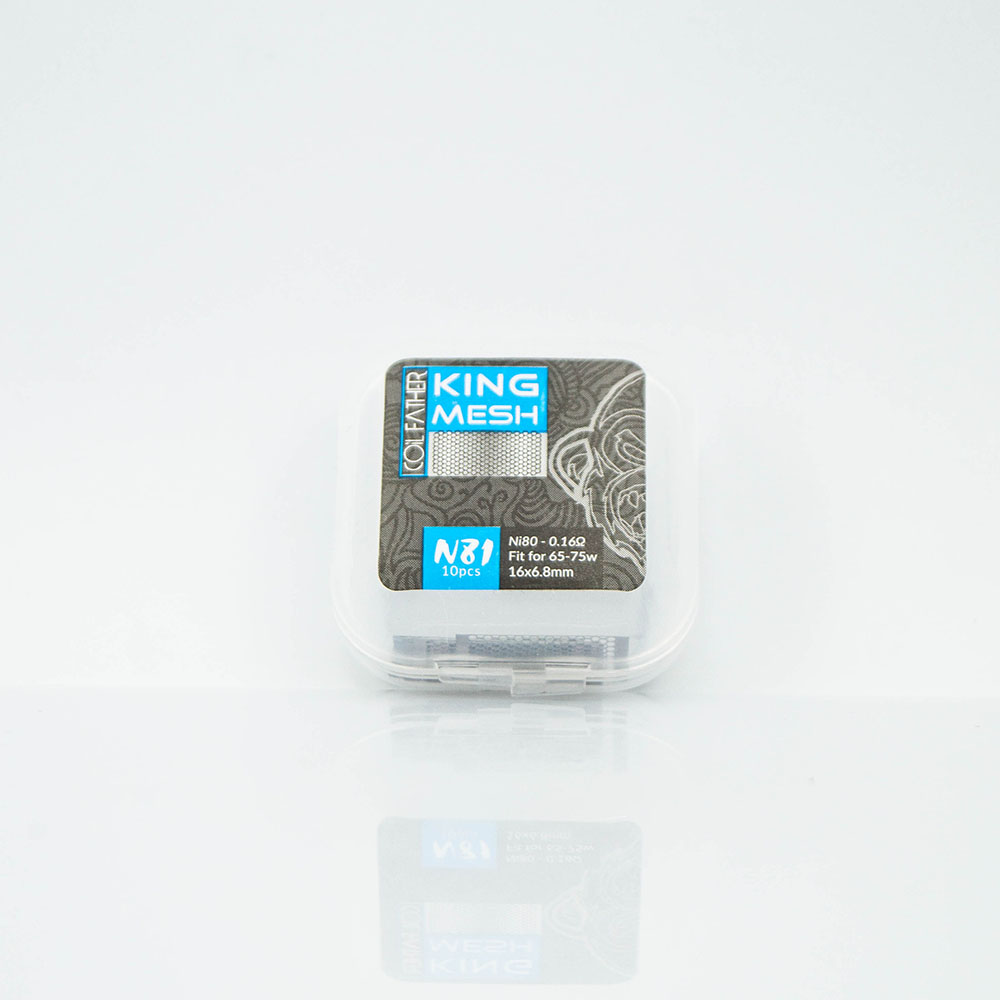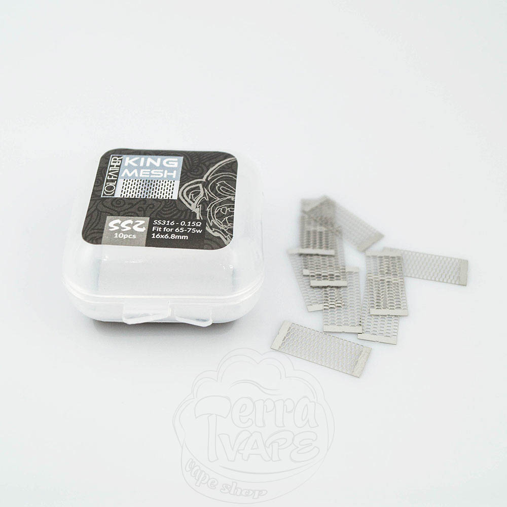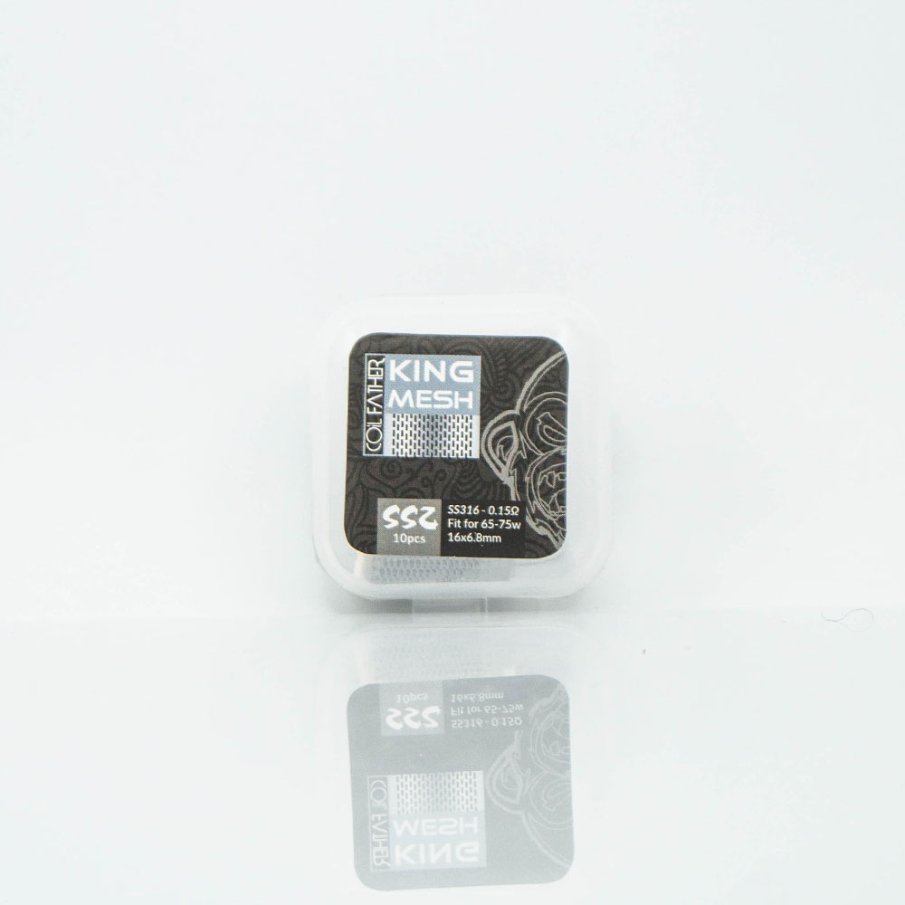 Сітка Coil Father King Mesh 10 штук - це сітка для обслуговування атомайзерів, що використовують відповідний тип нагрівального елемента. Поставляється в пластиковому кейсі на засувках, кожен містить 10 заготовок сітки.