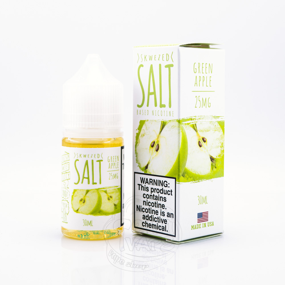 Skwezed Salt Green Apple 30ml 25mg - рідина на сольовому нікотині для pod-систем зі смаком хрусткого зеленого яблука з легкою кислинкою на післясмак.