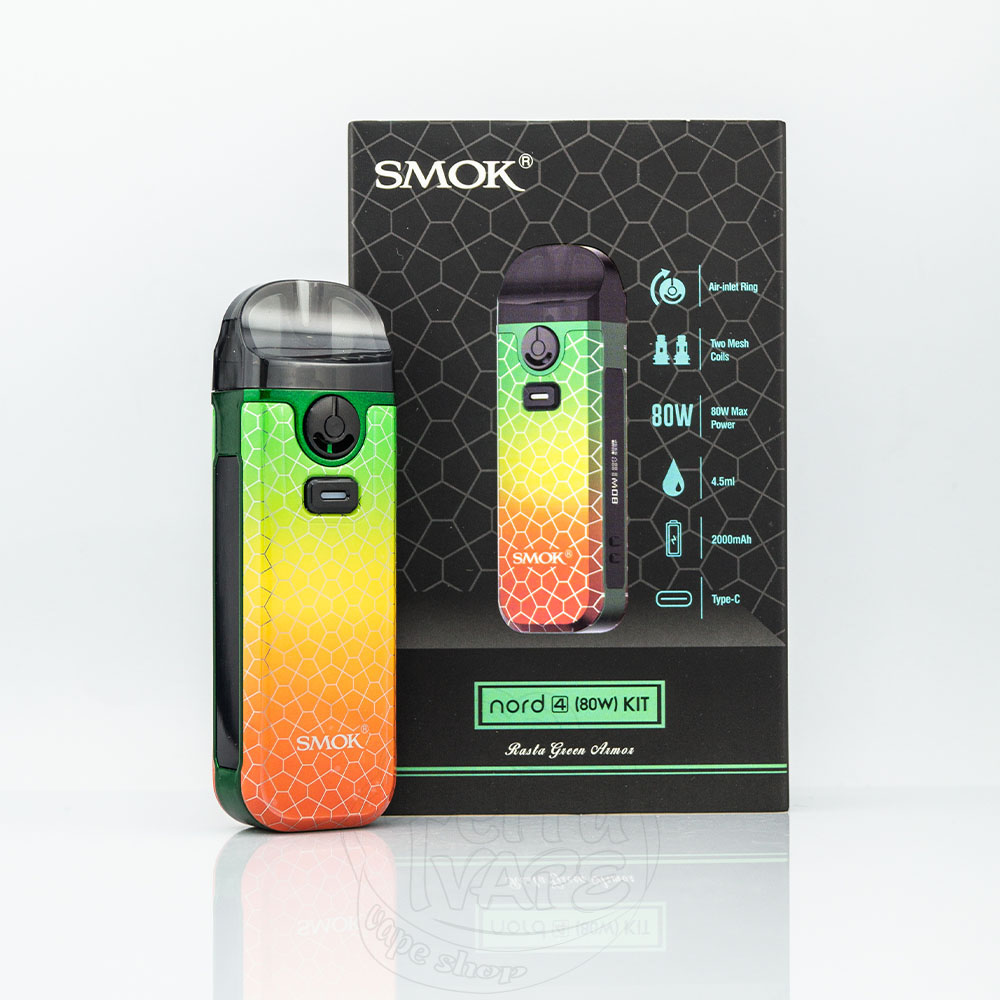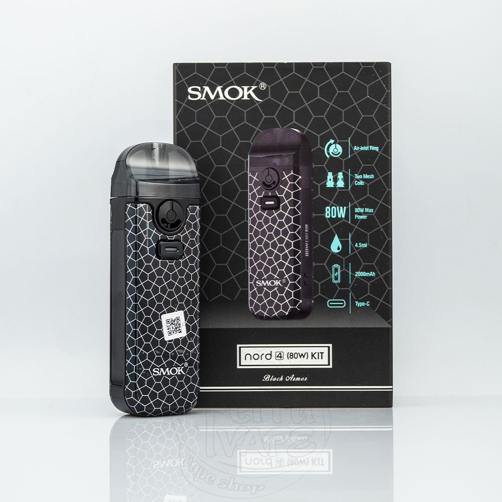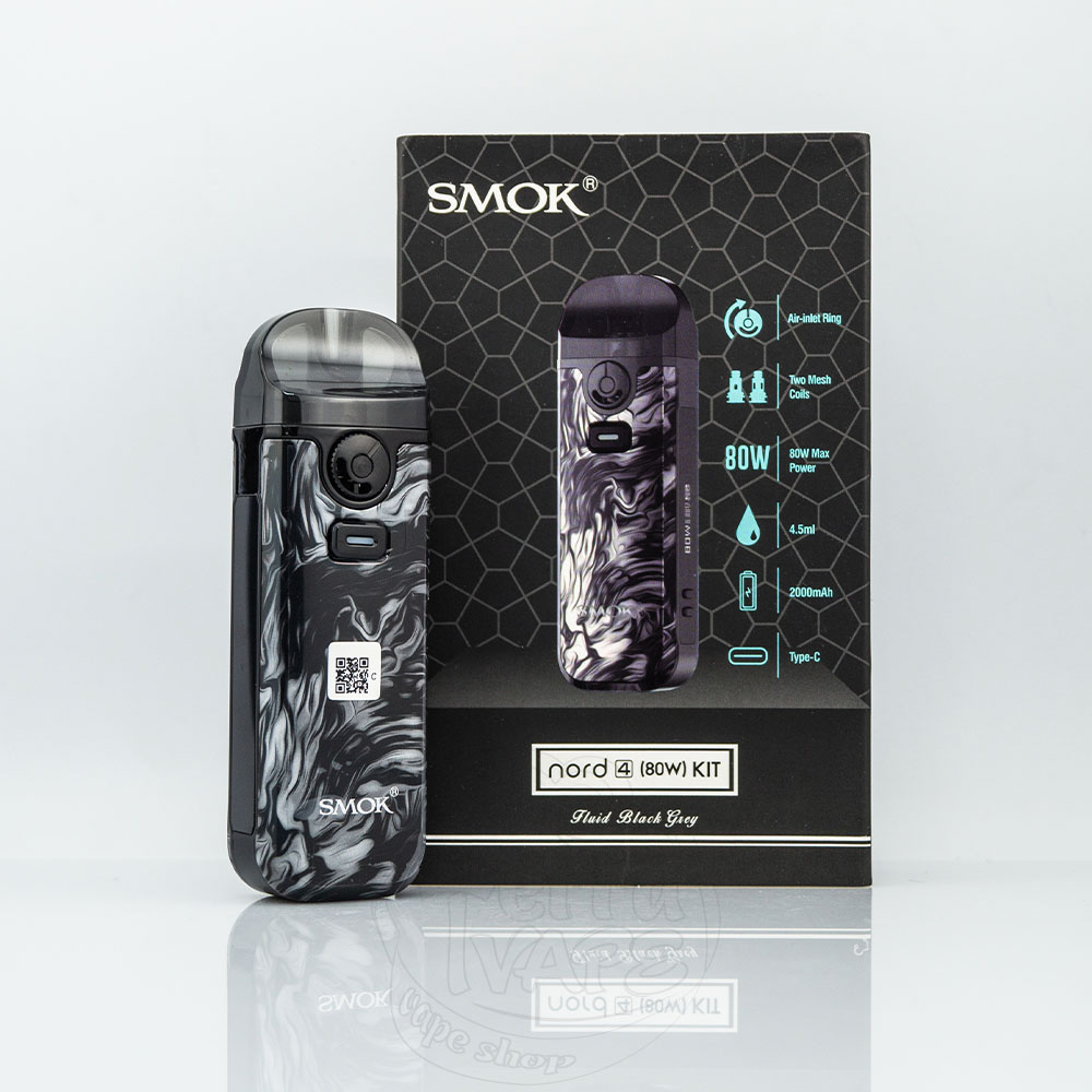 Smok Nord 4 Pod Mod Kit – це нова версія багаторазового под мод серії Nord від компанії SMOK. Працює від вбудованого акумулятора на 2000мАч з максимальною вихідною потужністю 80Вт. Активується від кнопки. Два види картриджів об'ємом 4.5мл надають широкий вибір випарників, а регулювання потужності дозволяє тонко налаштувати роботу електронної сигарети під переваги користувача.