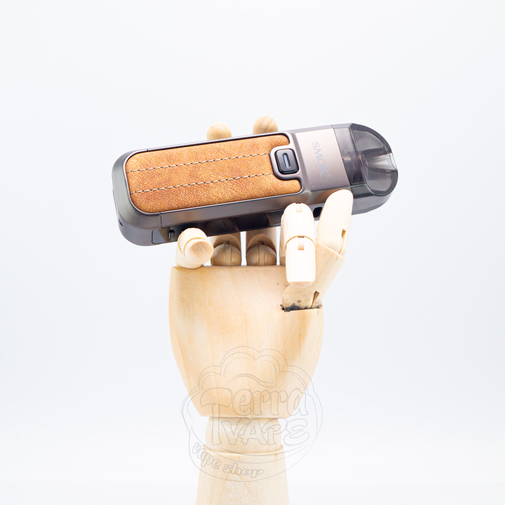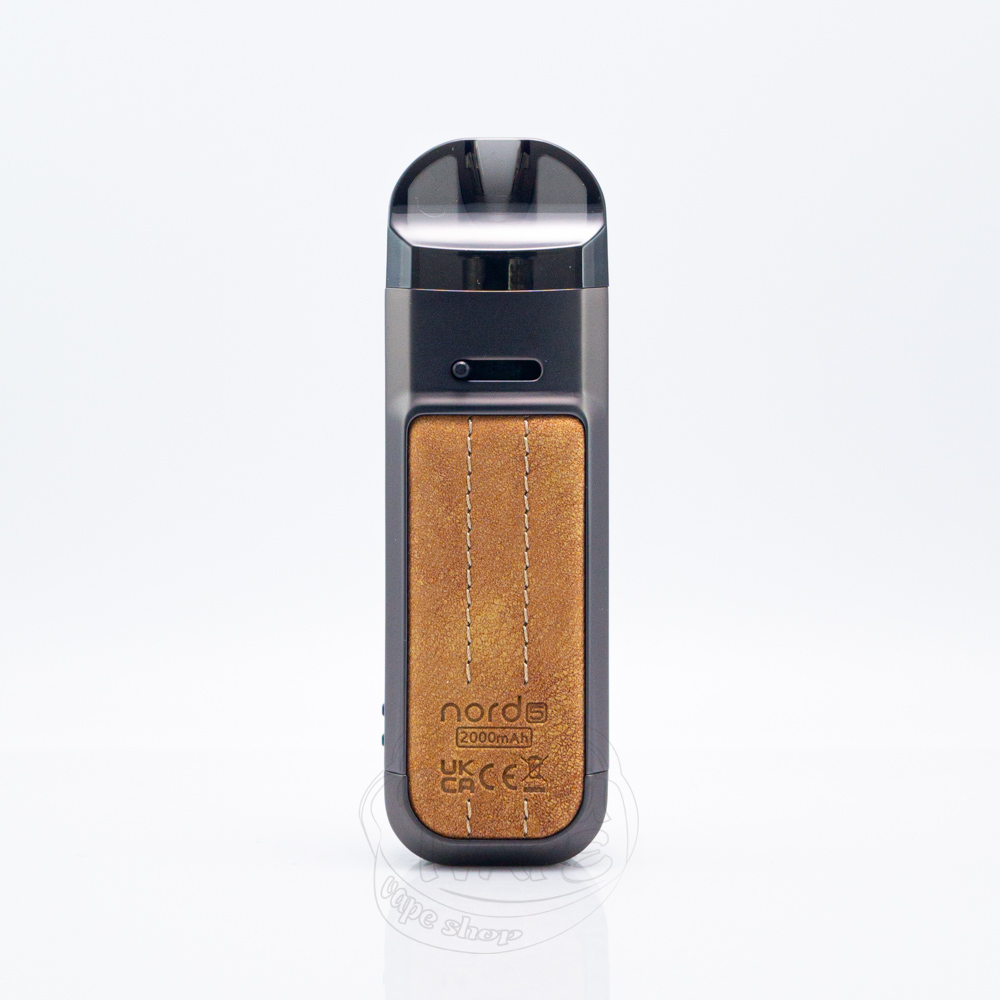SMOK Nord 5 Pod Mod Kit 2000mAh Brown Leather - це п'ята версія pod моду серії Nord, кольору коричневої шкіри від виробництва компанії SMOK. Акумулятор ємністю 2000мАг забезпечує доволі тривалий час автономної роботи. Максимальна вихідна потужність Норд 5 може досягати 80Вт. Пристрій працює з доволі великим картриджем, який вміщує 5мл рідини для електронних сигарет. Всередину картриджа встановлюються випаровувачі RPM3. Вейп має зручний монохромний екран 0.69". Активація здійснюється від кнопки, а швидкість заряджання через роз'єм Type-C складає 5V/1.5A.