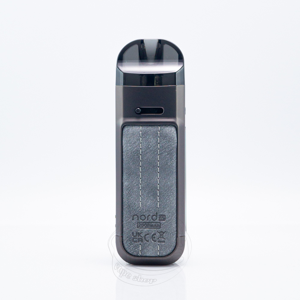 SMOK Nord 5 Pod Mod Kit 2000mAh Grey Leather- це п'ята версія pod моду серії Nord, кольору сірої шкіри від виробництва компанії SMOK. Акумулятор ємністю 2000мАг забезпечує доволі тривалий час автономної роботи. Максимальна вихідна потужність Норд 5 може досягати 80Вт. Пристрій працює з доволі великим картриджем, який вміщує 5мл рідини для електронних сигарет. Всередину картриджа встановлюються випаровувачі RPM3. Вейп має зручний монохромний екран 0.69". Активація здійснюється від кнопки, а швидкість заряджання через роз'єм Type-C складає 5V/1.5A.