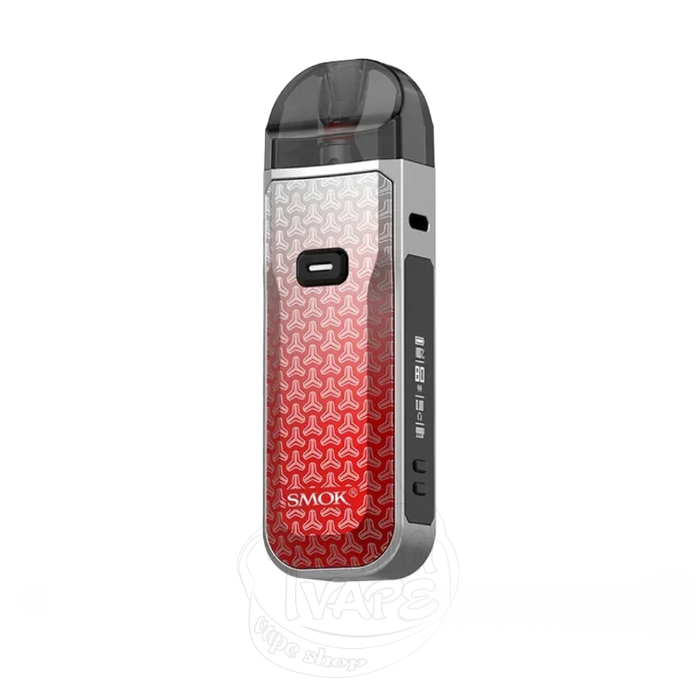SMOK Nord 5 Pod Mod Kit 2000mAh Red Grey Dart - це п'ята версія pod моду серії Nord, кольору червоно-сірого градієнту від виробництва компанії SMOK. Акумулятор ємністю 2000мАг забезпечує доволі тривалий час автономної роботи. Максимальна вихідна потужність Норд 5 може досягати 80Вт. Пристрій працює з доволі великим картриджем, який вміщує 5мл рідини для електронних сигарет. Всередину картриджа встановлюються випаровувачі RPM3. Вейп має зручний монохромний екран 0.69". Активація здійснюється від кнопки, а швидкість заряджання через роз'єм Type-C складає 5V/1.5A.