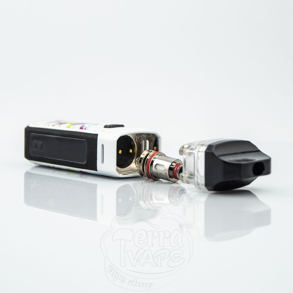 Девайс сумісний з двома картриджами, об'єм яких становить значні 6мл. Таким чином, виробник дозволяє швидко перемикатися між різними типами затяжок (MTL, DTL) і використовувати широкий діапазон випарників.