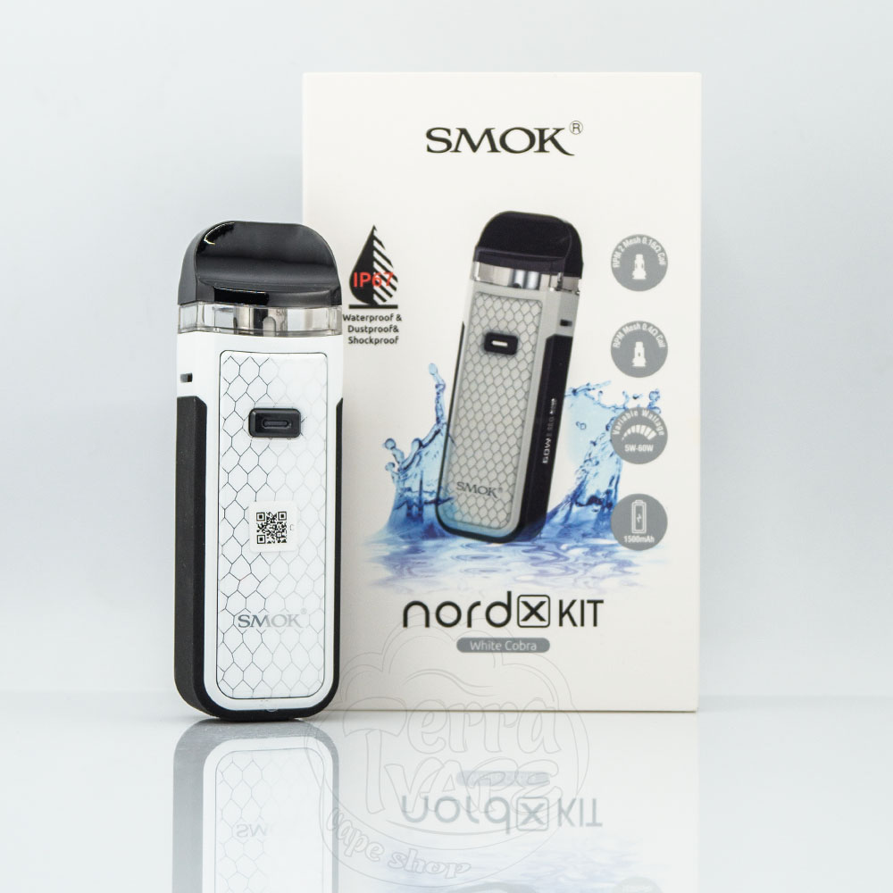 SMOK Nord X Pod Mod Kit – це новий под мод серії Nord із вбудованим акумулятором на 1600мАч від компанії Smok. Продуктивний та автономний з максимальною вихідною потужністю 60w та об'ємом картриджа 6мл. Пройшов сертифікацію IP67, що підтверджує його стійкість до ударів та занурення у воду. Активується від кнопки.