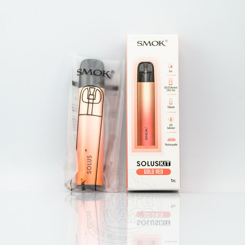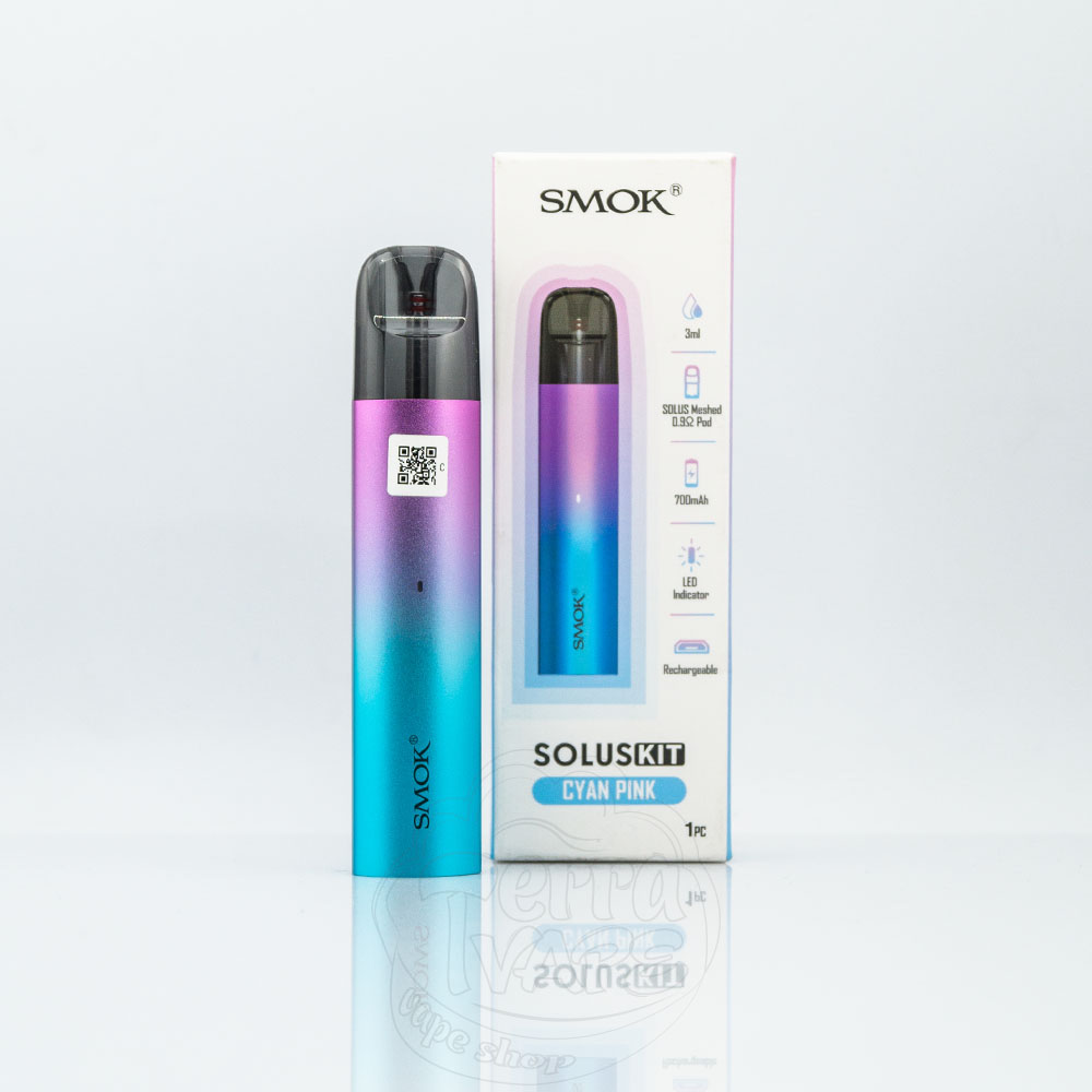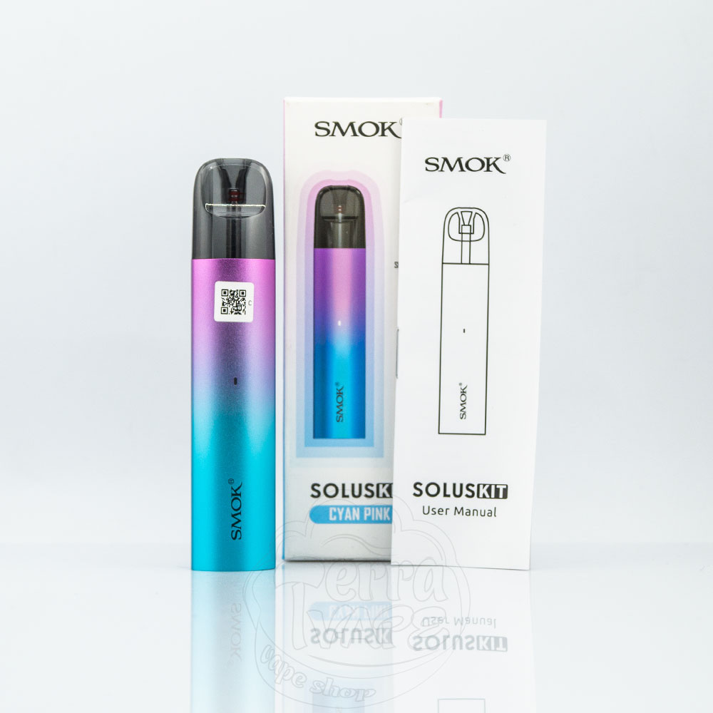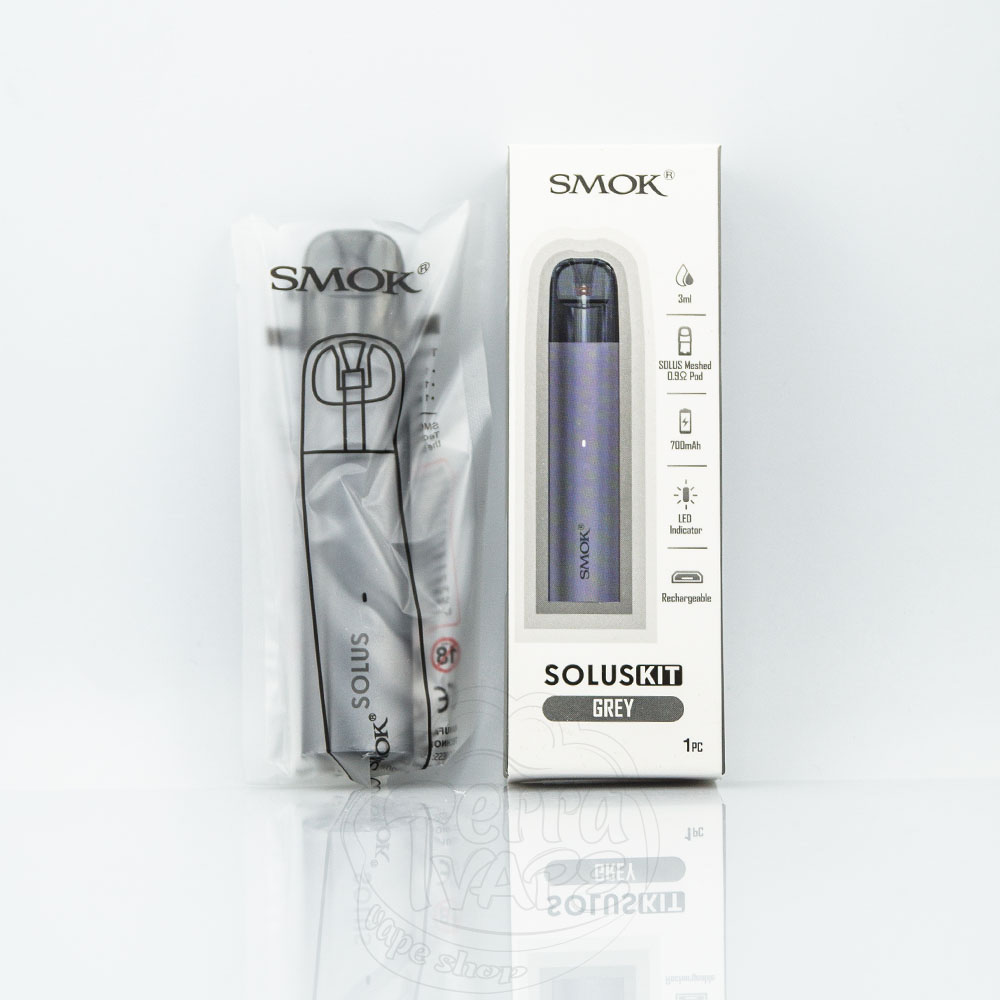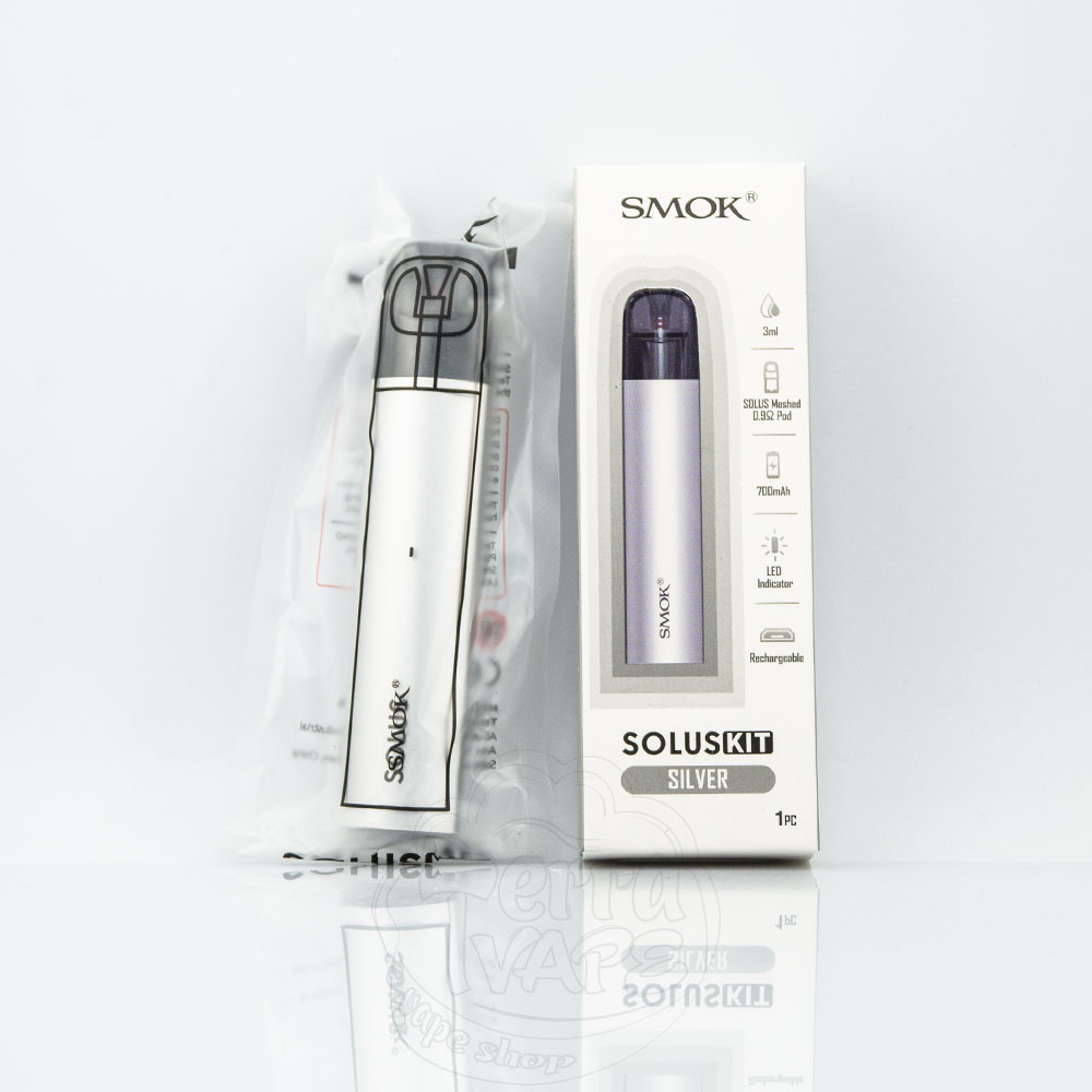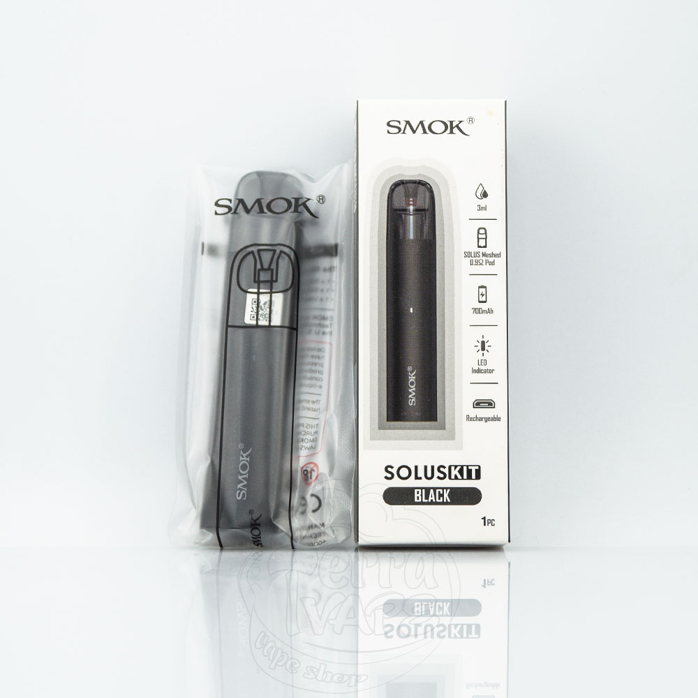 SMOK Solus Pod Kit 700mAh 3ml – це багаторазова pod система від компанії SMOK. Вбудований акумулятор на 700мАч із зарядкою через micro-usb. Об'єм картриджа становить 3мл, а опір – 0.9Ом. Ця електронна сигарета активується від затяжки та призначена для використання під сигаретну затяжку. Підійде для новачків у сфері вейпінгу.