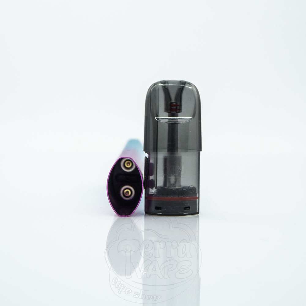 Картридж кріпиться до корпусу потужних магнітах. Вміщує до 3мл рідини для електронних сигарет. Сконструйований за принципом захисту від протікання.