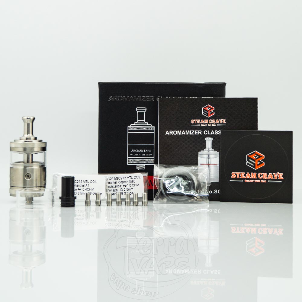 Steam Crave Aromamizer Classic MTL RTA – это односпиральный бак под сигаретную затяжку от компании Steam Crave. Диаметр базы составляет 23мм. Атомайзер может вместить до 3.5мл жидкости для электронных сигарет. Простота обслуживания, отсутствие протечек и интересная система обдува, делает его идеальным устройством для MTL-энтузиастов.