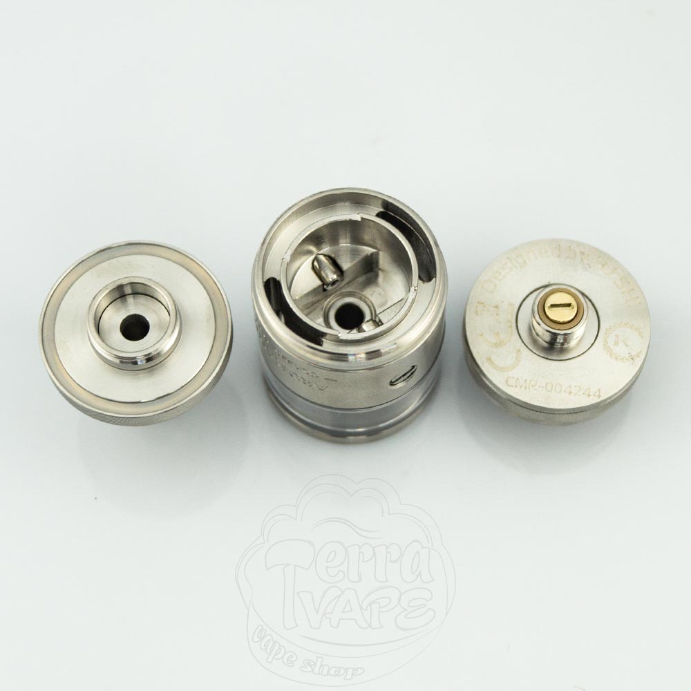 По обе стороны есть пара вырезов, которые помогают позиционировать спираль, позволяя упирать в них coil jig. Жидкость для электронных сигарет поступает в нижнюю часть через пару отверстий в пазах для ваты.