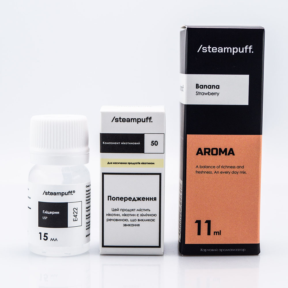 Steampuff Salt Banana Strawberry 30ml 50mg - это набор для самостоятельного приготовления солевой жижи со вкусом нежного банана в сочетании с сочной и ароматной клубникой.