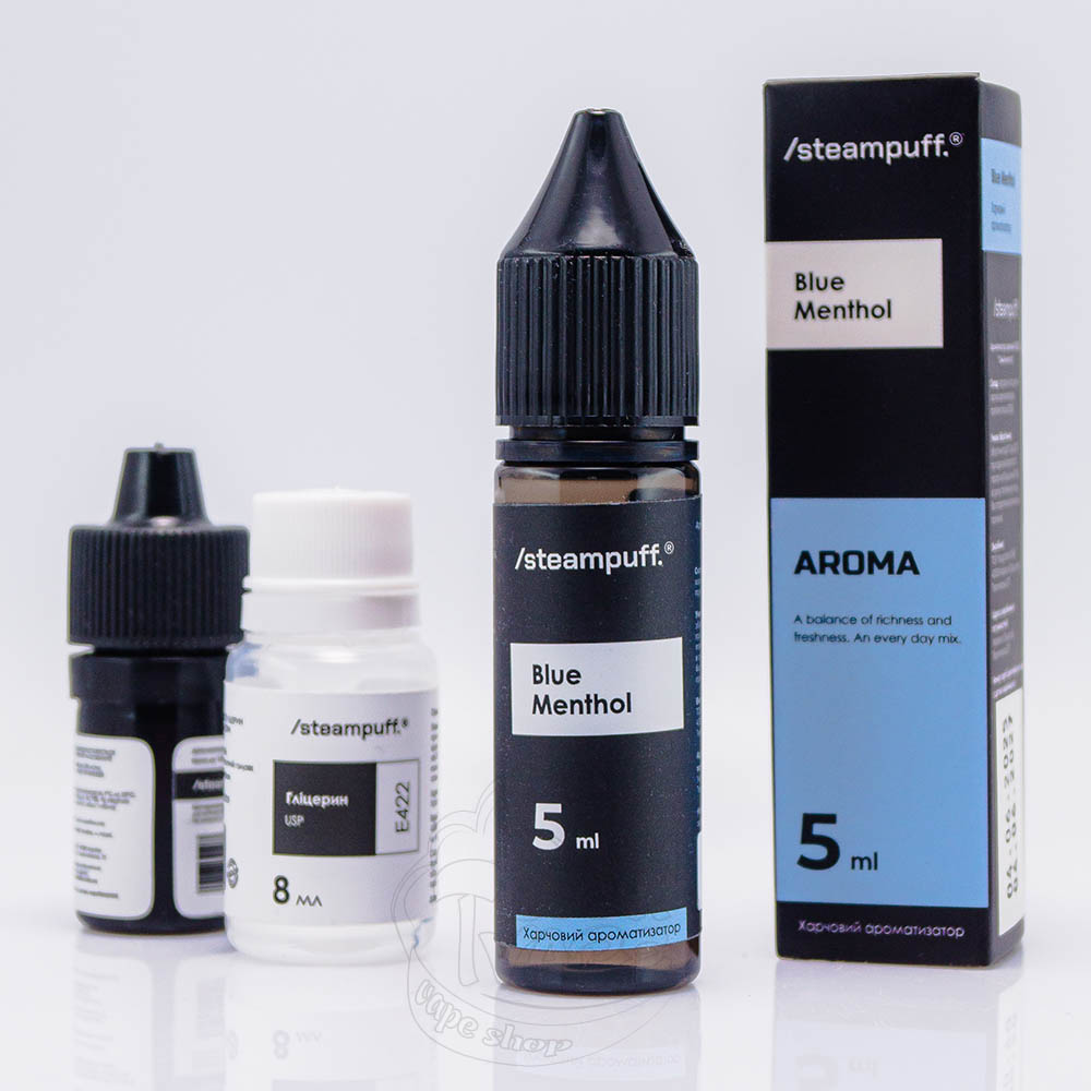 Steampuff Salt Blue Menthol 15ml 50mg - это набор для самостоятельного приготовления жидкости со вкусом свежего ментола.