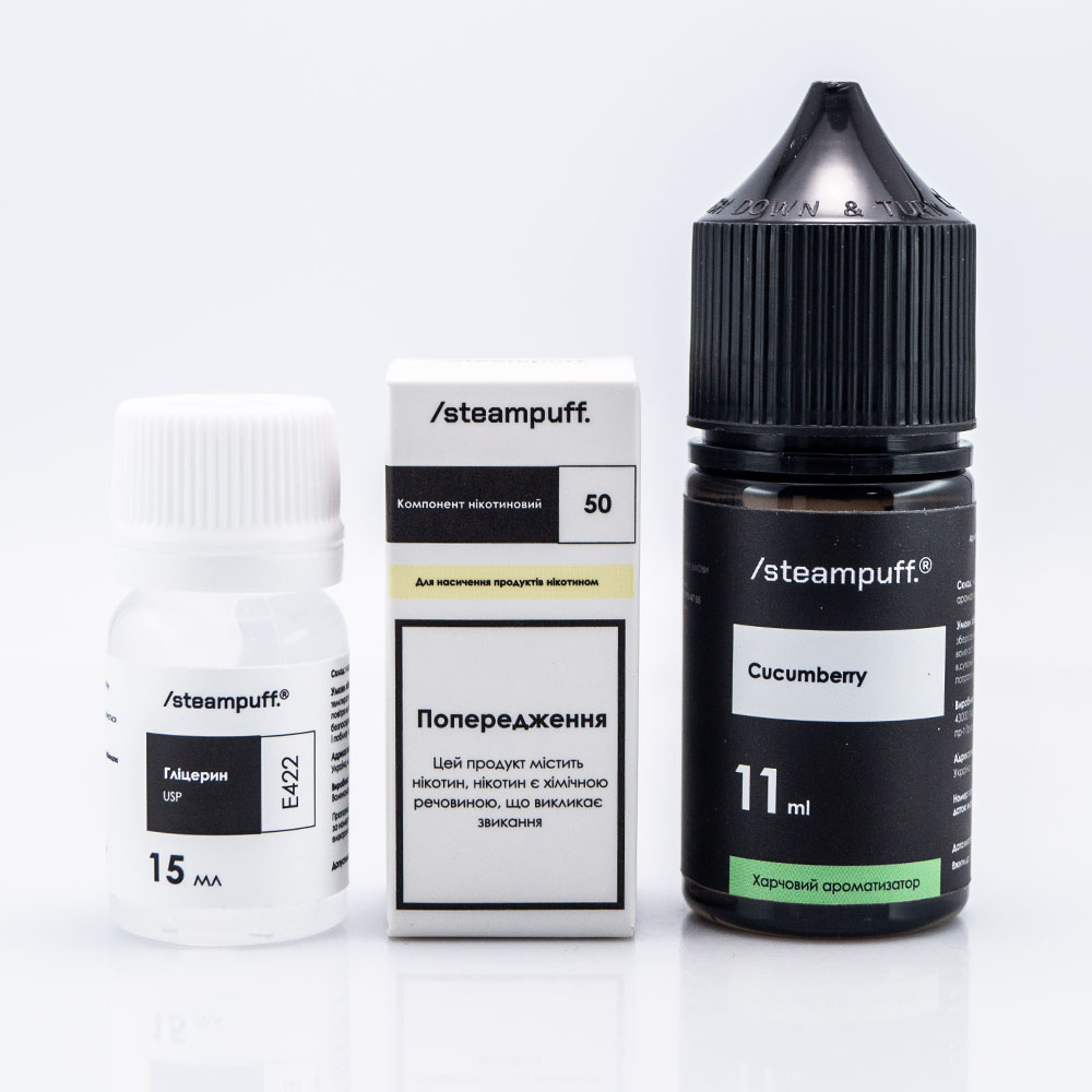 Steampuff Salt Cucumberry 30ml 50mg - це набір для приготування рідини з неординарним поєднанням смаків солодкої полуниці та хрусткого освіжаючого огірка.