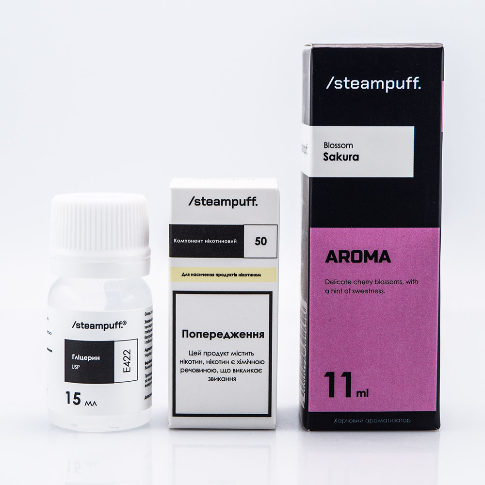 Steampuff Salt Sakura 30ml 50mg - це набір для самостійного виготовлення сольової жижі для вейпів зі смаком сакури, який віддалено нагадує вишневі нотки та насичує рецептори неймовірним квітковим ароматом.