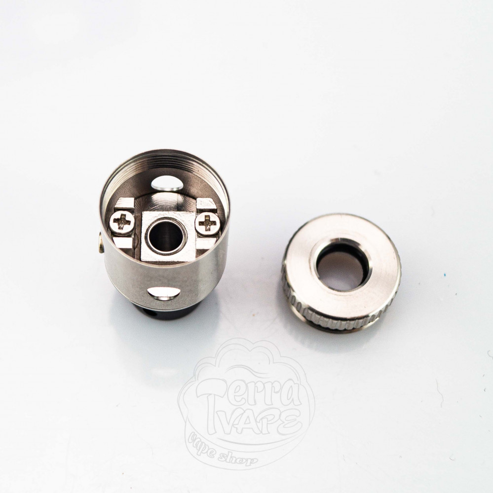 На лицьовій стороні під знімною панеллю, що утримується магнітами, розташувався відсік для боро-танка, а під ним дисплей і кнопки регулювання. З цього ж боку також розташований акумуляторний відсік під батареї формату 18650 (купуються окремо). З протилежного боку можна знайти кнопку Fire і роз'єм micro-usb.