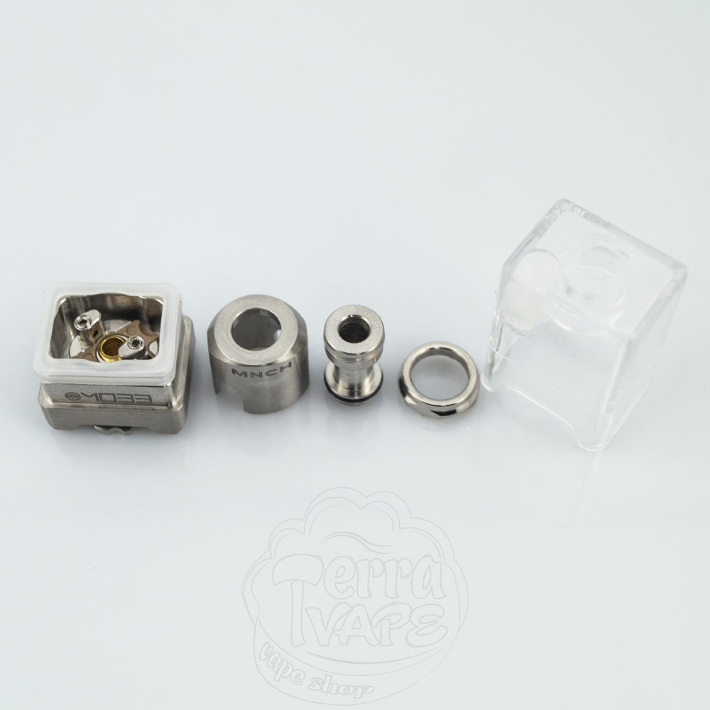 Бак виконаний з харчового пластику (PCTG) і вміщує до 3.2 мл рідини для електронних сигарет. Кріпиться до металевої бази на гумових ущільнювачах, сидить щільно, але досить легко знімається за необхідності.