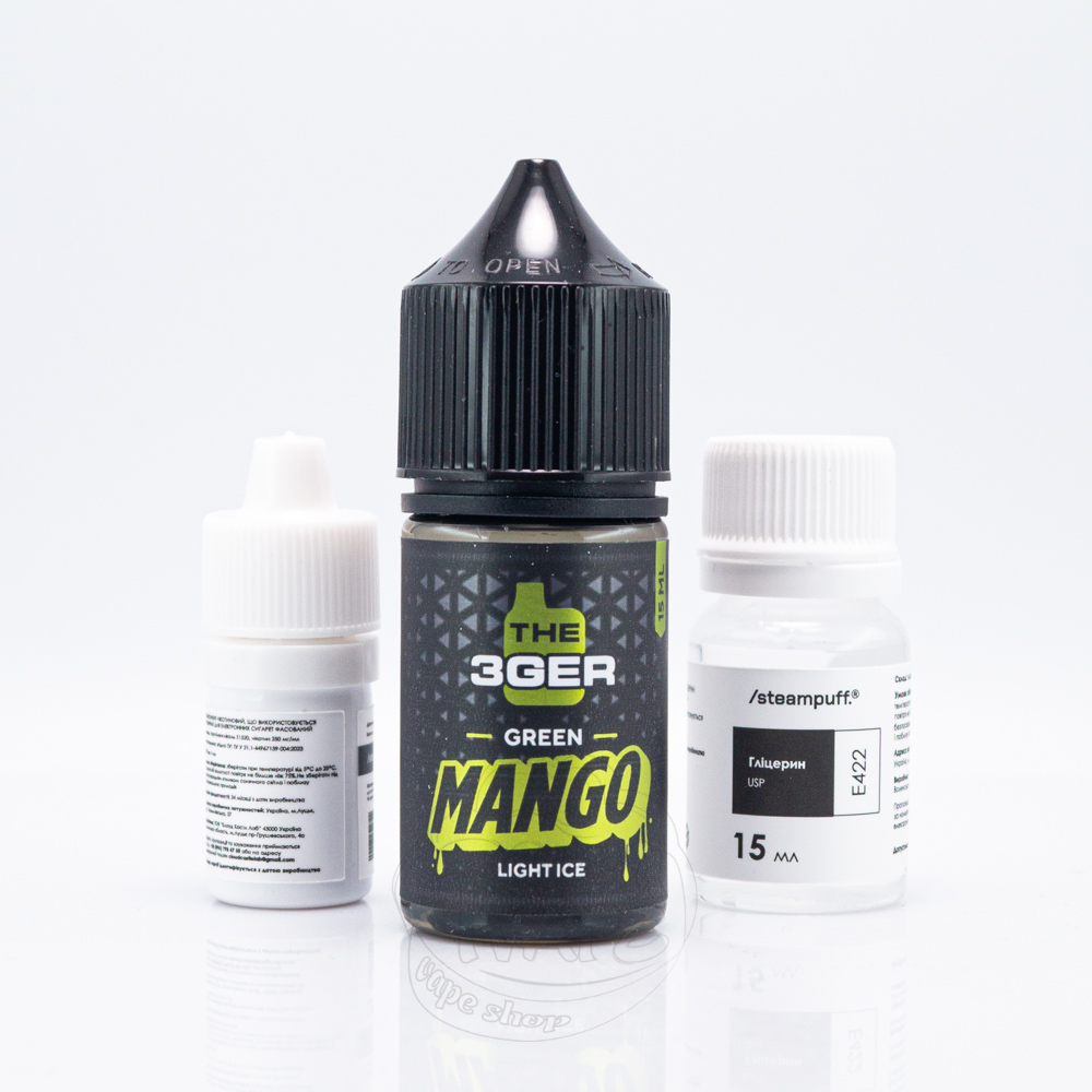 The 3Ger New Salt Green Mango 30ml 50mg - це набір компонентів для приготування рідини зі смаком зеленого манго з льодом.