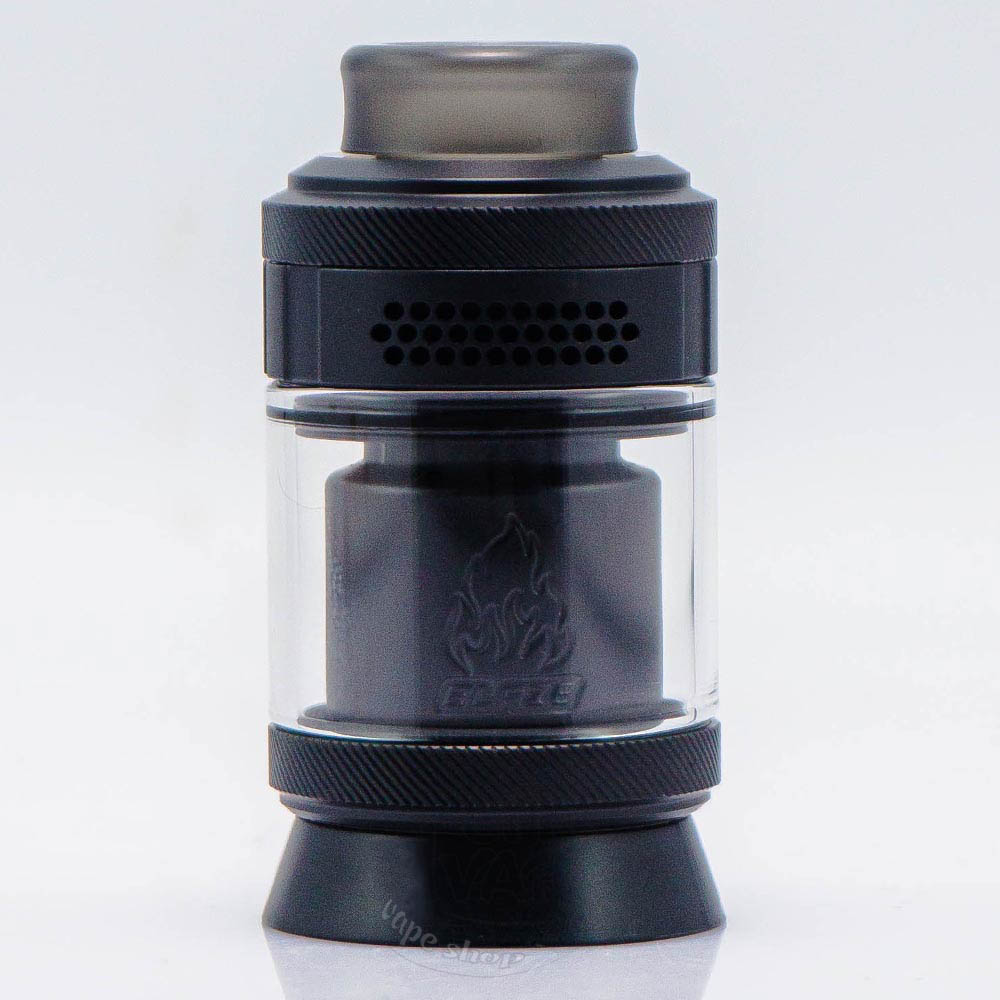 ThunderCloud Blaze Solo 2 RTA Matte Black - це сучасна та якісно розроблена друга версія Blaze Solo RTA, чорного матового кольору, від підрозділу компанії THC - Thunder Cloud у колаборації з відомим американським блогером Mike Vapes. Місткість резервуара становить 3.5мл. Комплектується з "бабл" склом, яке додає об'єму (5.5мл). Діаметр бази - 25мм. Призначений для однієї спіралі. Дріп-тип 810. Обдув точковий на 360 градусів. Заливка та обдув верхні.