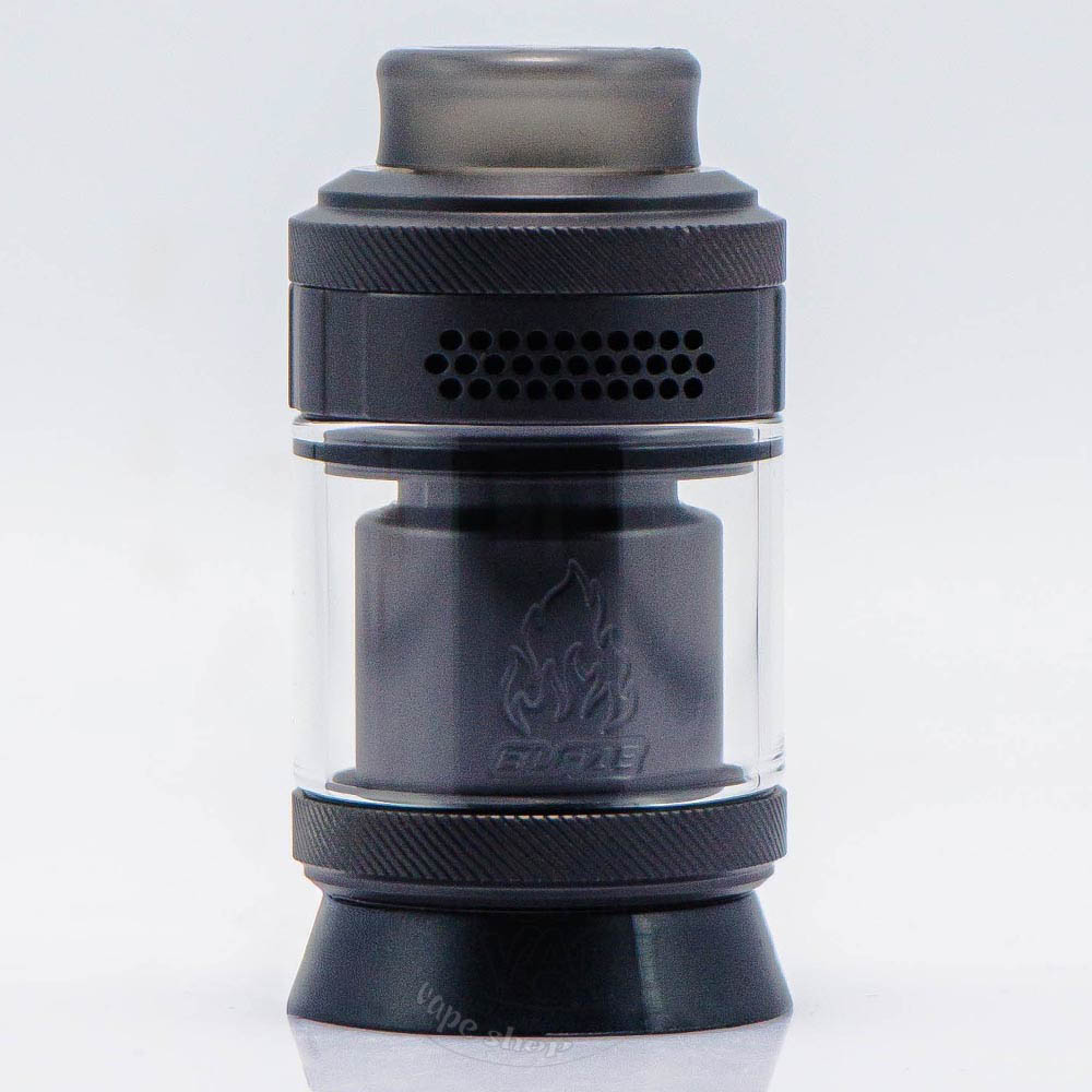 ThunderCloud Blaze Solo 2 RTA Matte Gunmetal - це сучасна та якісно розроблена друга версія Blaze Solo RTA, сірого матового кольору, від підрозділу компанії THC - Thunder Cloud у колаборації з відомим американським блогером Mike Vapes. Місткість резервуара становить 3.5мл. Комплектується з "бабл" склом, яке додає об'єму (5.5мл). Діаметр бази - 25мм. Призначений для однієї спіралі. Дріп-тип 810. Обдув точковий на 360 градусів. Заливка та обдув верхні.
