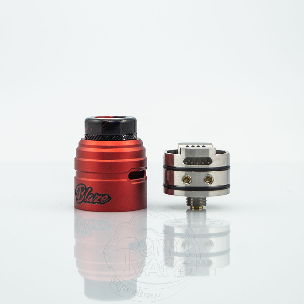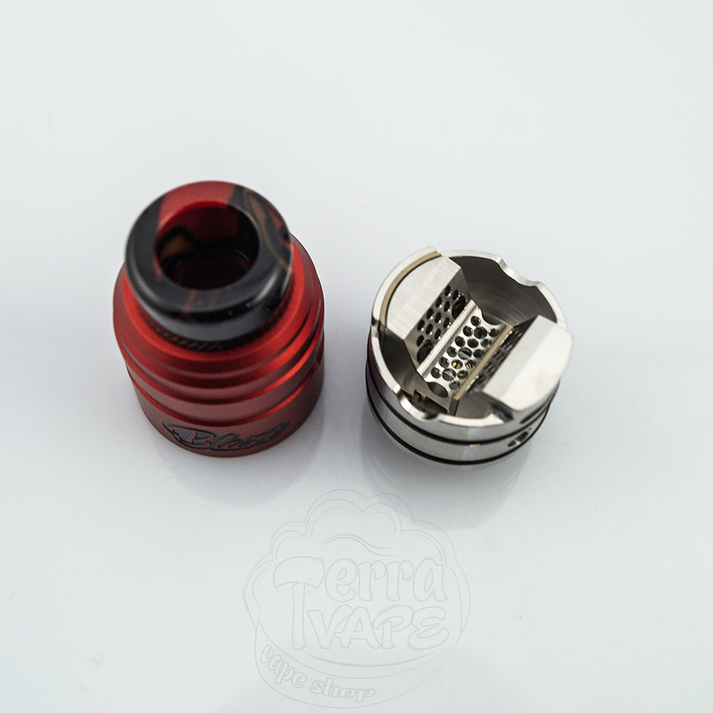 ThunderHead Creations Blaze Solo RDA – це односпіральна дріпка від компанії THC у співпраці з популярним вейп-блогером Mike Vapes. Діаметр бази – 24мм. Використовується безстійка установка спіралі та точковий обдув на 315 градусів, що забезпечує якісну передачу смаку рідини. Ванна досить глибока, щоб вмістити до 2мл жижі для вейпу. Дріп-тип 810 виконаний з акрилу, не нагрівається і приємно прилягає до губ. При бажанні його можна замінити на будь-який інший безоринговий 810. Простота установки койлів і відмінна смакопередача роблять цей атомайзер відмінним варіантом для любителів обслуги.