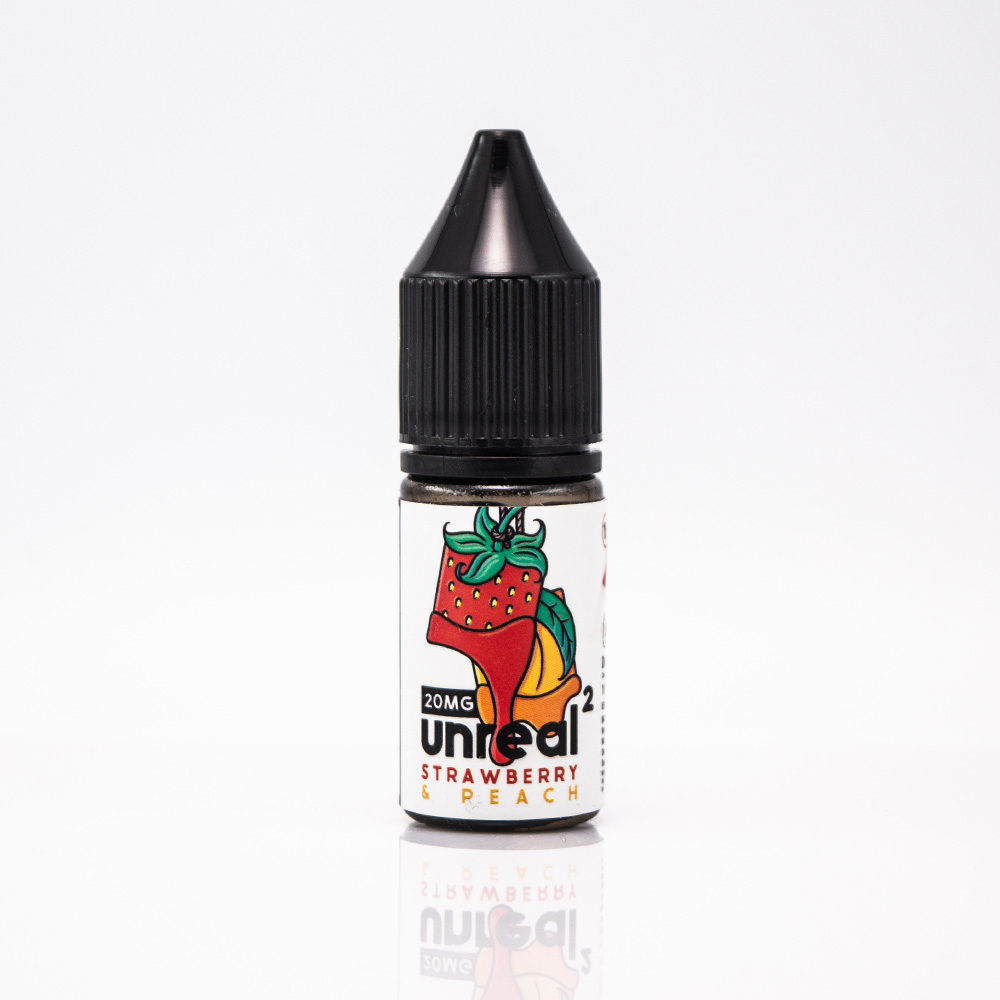 Unreal Salt Strawberry Peach 10ml 20mg - це жижа для вейпу з солодким літнім смаком свіжої полуниці та соковитого персику.
