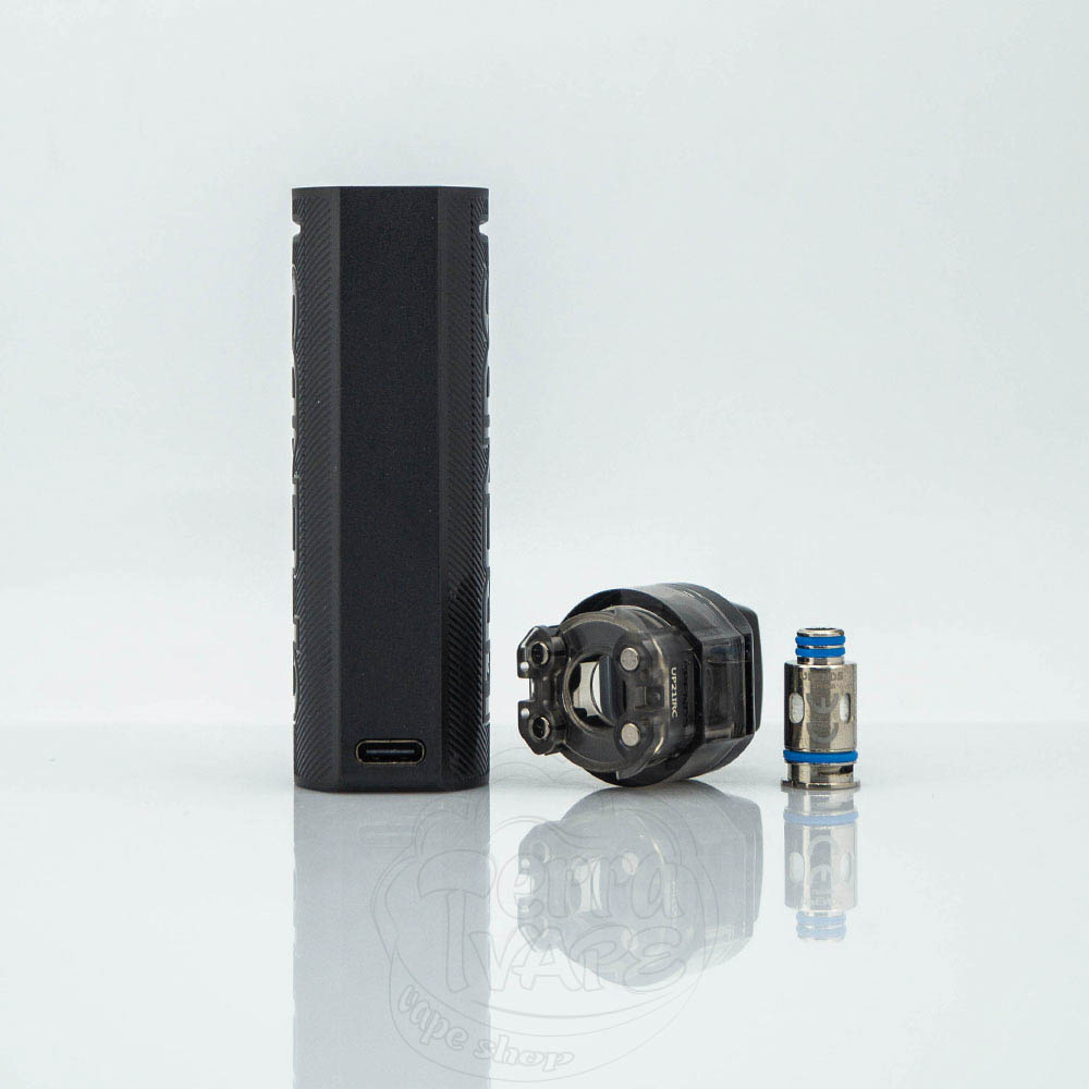 Вгорі батарейного блоку розмістився досить ємний картридж, що надійно утримується на місці за допомогою потужних магнітів. Резервуар як би височить над корпусом, завдяки чому користувач завжди бачить рівень рідини, що залишилася, щоб вчасно зробити дозаправку. Місткість складає гідні 4мл.