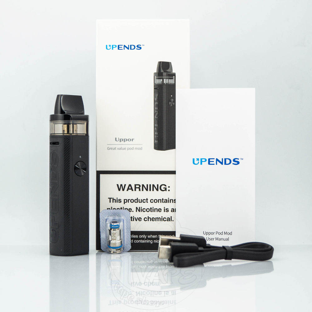 Upends Uppor Pod Mod Kit 1000mAh – це под-мод від компанії Upends. Працює від вбудованого акумулятора на 1000мАч з максимальною вихідною потужністю 28W. Активується від кнопки. Картридж працює зі змінними випарниками та може вмістити до 4мл рідини для електронних сигарет. Активується від кнопки. Ідеальний вибір для простого вейпінгу, що надає можливість DTL (вільної) або RDTL (обмежено вільної) затягування у простому для використання форматі.