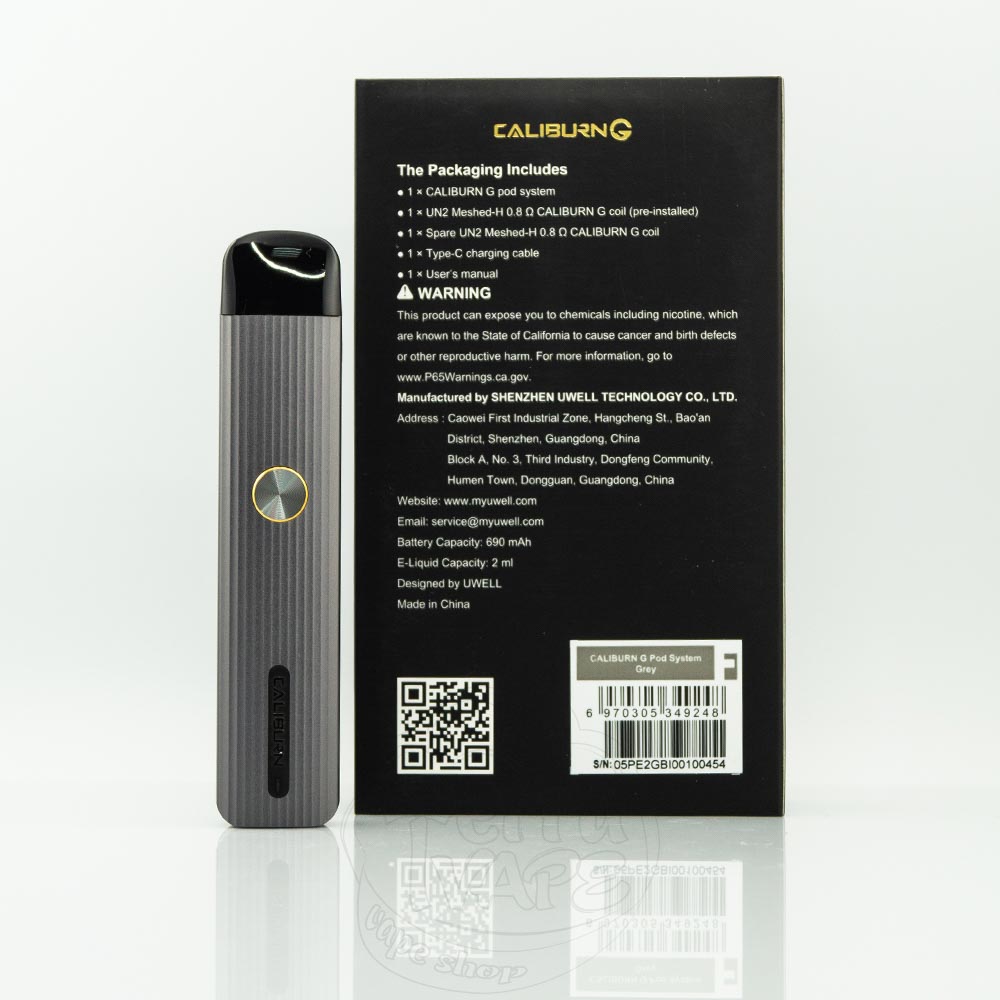 Uwell Caliburn G Pod Kit 690mAh Grey – это обновленная версия многоразовой под системы Caliburn, серого цвета от компании Uwell. Она получила увеличенную емкость аккумулятора, картридж со сменными испарителями, обновленный дизайн и зарядку Type-C. Активируется как от кнопки, так и от затяжки. Компактная и простая в эксплуатации электронная сигарета, благодаря чему отлично подойдет для новичков в сфере вейпинга и бывалых пользователей.