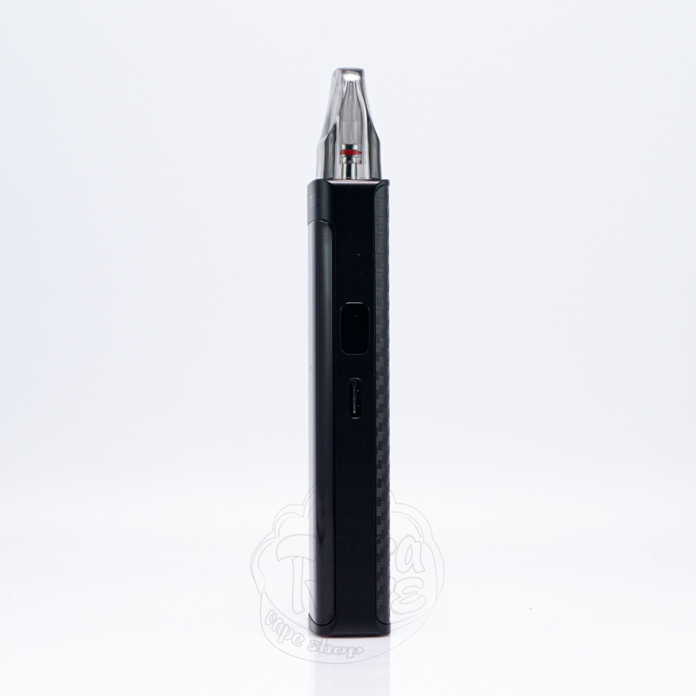 С левой стороны находится регулятор затяжки, а на противоположной стороне можно увидеть зарядный разъем Туре-С и едва выступающую кнопку активации. По корпусу в разных местах разбросаны логотипы бренда и самой модели. Они лаконично вписаны в дизайн и не бросаются в глаза, сосредотачивая все внимание на основных элементах.