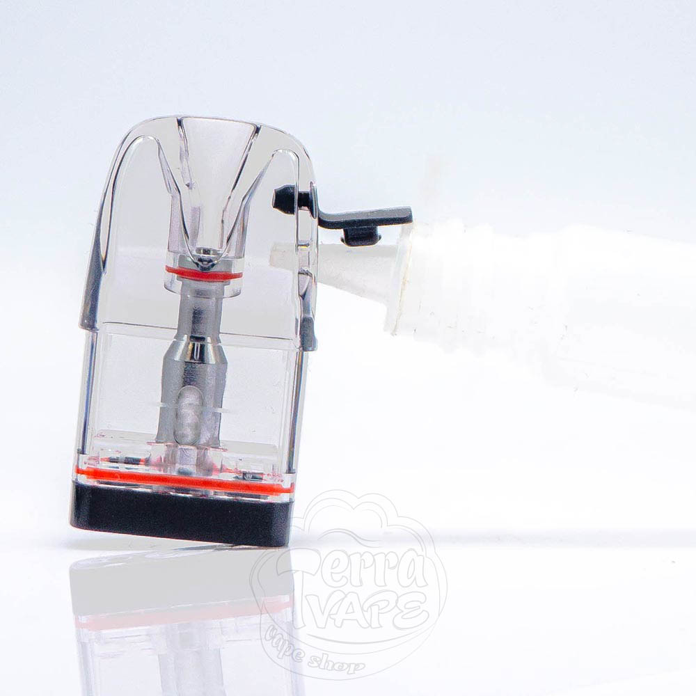 POD-система комплектується з двома оновленими картриджами серії GPP, які мають об'єм 3мл. Заправка у них верхня, що сприяє зменшенню ризиків протікань та дозволяє заливати жижку, не відокремлюючи картридж від корпусу.