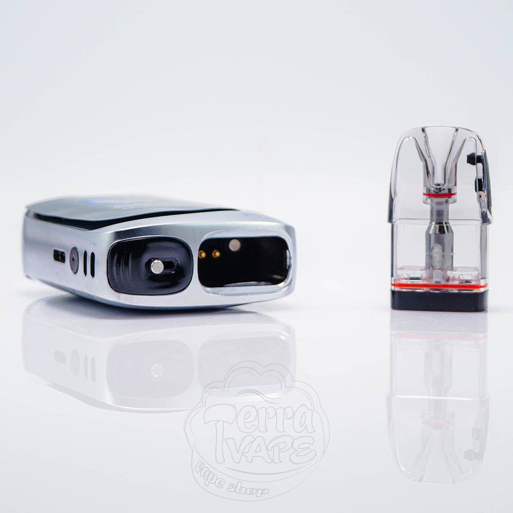 З фронтальної сторони пристрій містить декоративну панель, а всю іншу сторону займає сенсорний дисплей діагоналлю 2.0″. Для зручності відслідковування рівня рідини, яка залишилась в картриджі, корпус має спеціальне віконце. Біля картриджу, на верхній частині, розташовується регулятор тугості затяжки у вигляді слайдера. На бічній стороні знаходяться порт Type-C, кнопка активації та прорізи для ланцюжка.