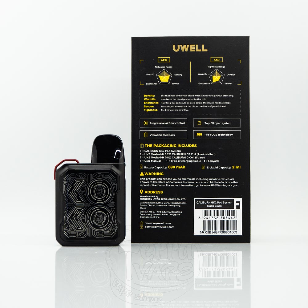 Корпус, изготовленный из прочного пластика, Uwell Caliburn GK2 разработан для портативности. Стильные пластины из силикатного закругленного стекла ослепительно сияют, выделяя вас среди серой толпы.