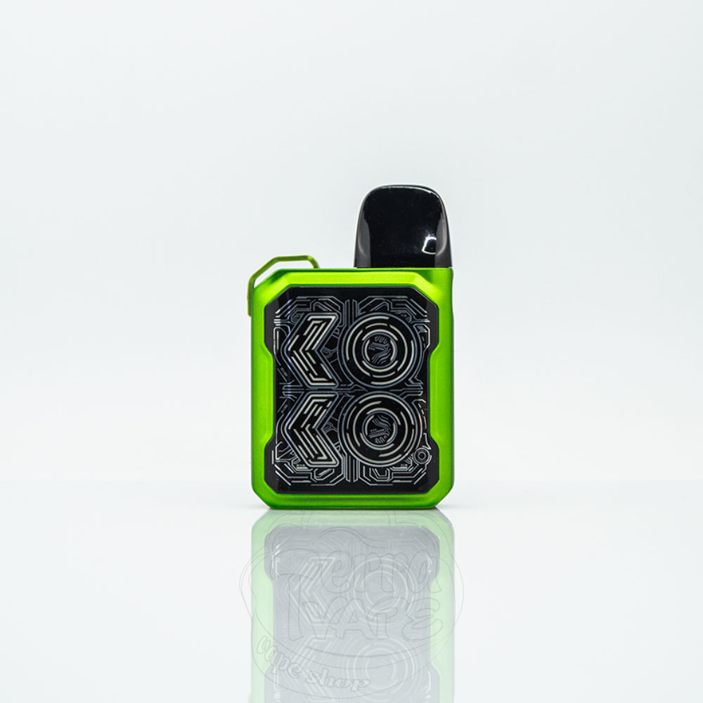 Вместо классической крохотной лампочки-индикатора Uwell решили подсветить название модели на лицевой стороне целиком. Таким образом, делая затяжку контуры KOKO будут загораться определенным цветом в зависимости от уровня заряда аккумулятора, а после тяги сменят еще три цвета (белый, желтый и синий):