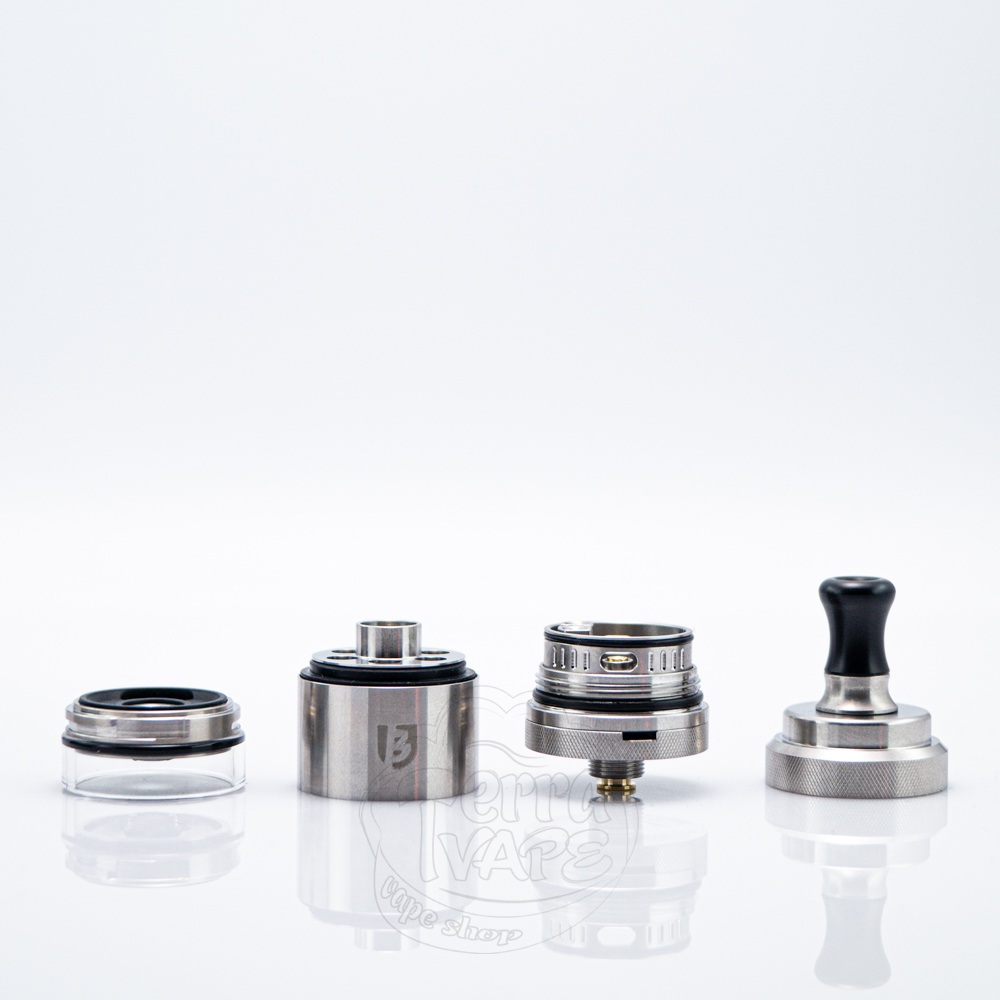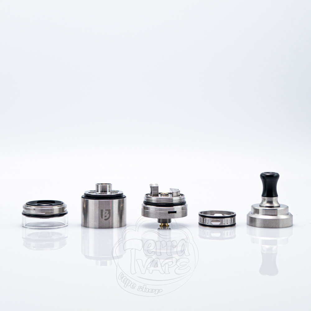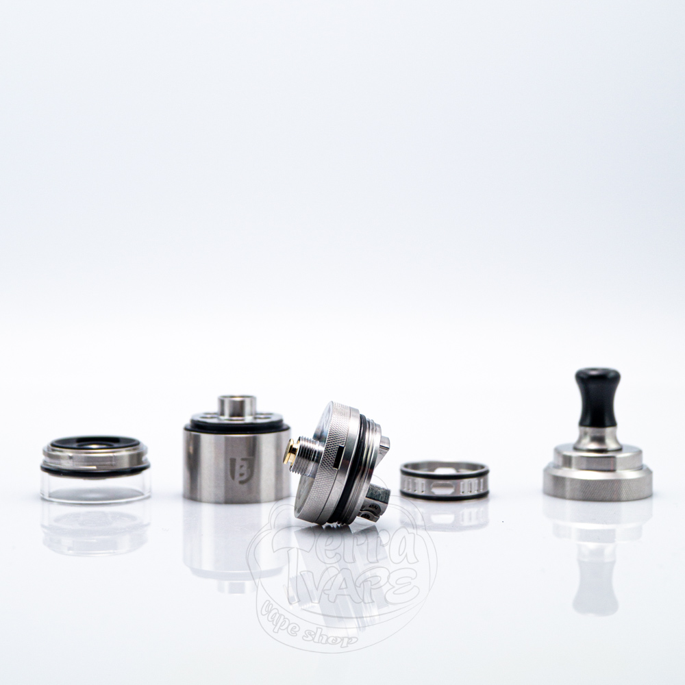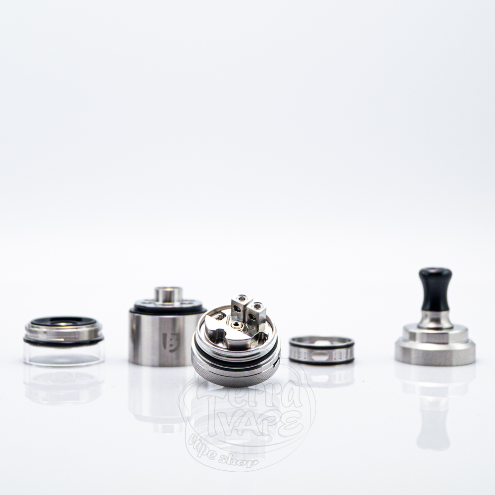 З комплекту ви отримаєте декілька наборів, серед яких знайдете необхідні запчастини, спіралі, жиклери та декілька варіантів дріп-типів. Така увага виробника до дрібниць відображає прагнення забезпечити комплексний та зручний для користувача набір. Мундштуки мають невеликий діаметр, щоб максимально розкрити відчуття від MTL вейпінгу. Їхньою перевагою є те, що складаються вони з двох частин (адаптер та сам дріп-тип). Це означає, що якщо жоден з представлених варіантів вам не сподобається, ви зможете від'єднати адаптер та вміщати стандартні 510 мундштуки. Верхня кришка з накаткою відкручується в чверть оберту та відкриває доступ до заправних отворів.