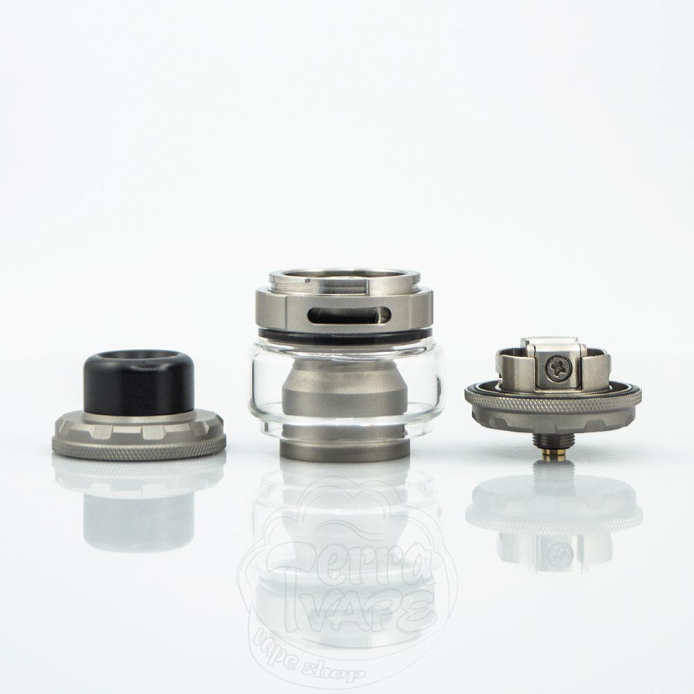 Як і у випадку з верхнім кільцем заправки, основа бака вишукано зазубрена, тому його дуже легко прикручувати і відкручувати з мода.