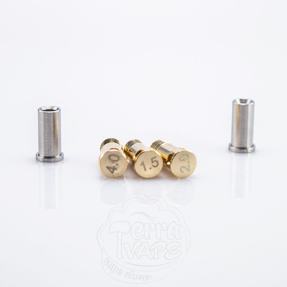 Принцип дії абсолютно такий самий, але інший тип жиклерів буде встановлюватися у внутрішню частину дріп-типу. Щоб замінити пін, від'єднайте від мундштука пластикову частину та вийміть встановлений жиклер, а на його місце просто вставте новий. Ці жиклери вже не мають певного позначення розміру, а просто мають три різних діаметри: менший, середній та більший.