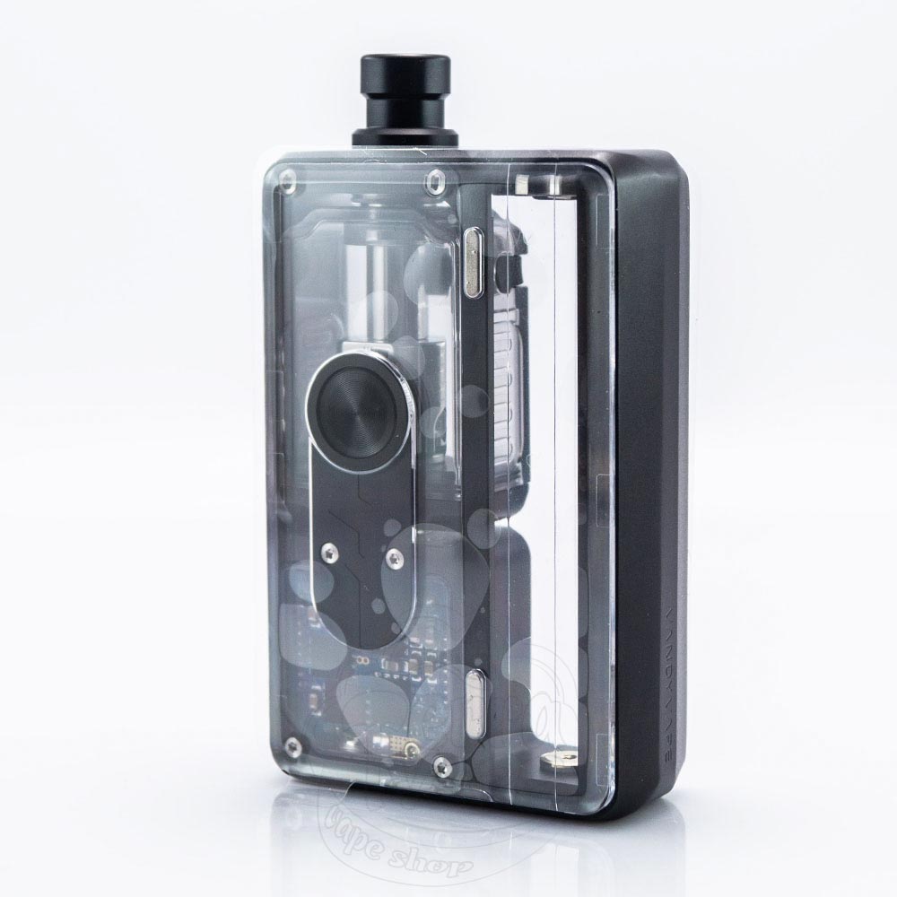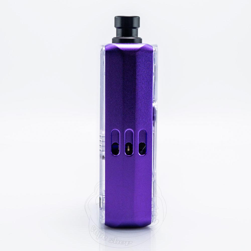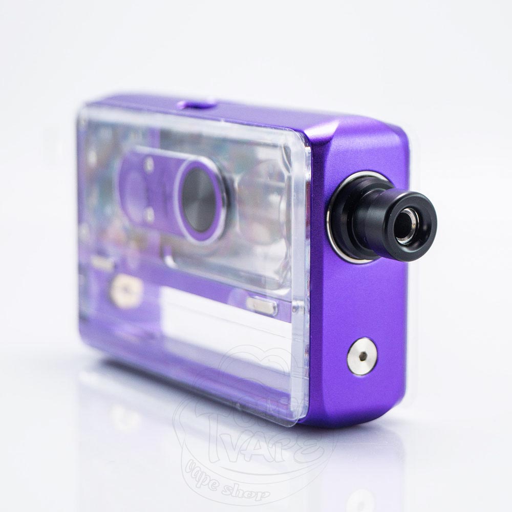 Девайс продається у коробочці з великим прозорим віконцем, через яке чітко видно компоненти набору. Можливі кольори корпусу яскраві та насичені і пропонують наступні варіанти: чорний, синій, фіолетовий, червоний, м'ятний та ніжно-рожевий. Панелі пристрою захищені плівкою, яку дуже легко схопити за виступаючі язички та відклеїти. Оскільки дверцята повністю прозорі, всі внутрішні елементи аіо-системи добре проглядаються, що виглядає дуже привабливо та стильно. Таким чином, ви можете змінювати зовнішній вигляд пристрою просто використовуючи термоусадки для акумулятора з різним дизайном.