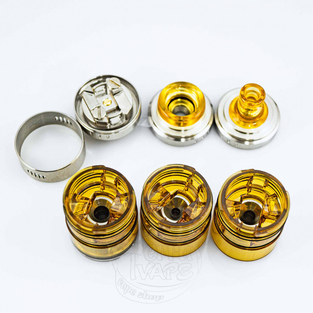 Цікавим моментом є те, що Vandy Vape Requiem RTA використовує два варіанти топ-кепа, що встановлюється залежно від того, який тип колби буде використовуватися. Завдяки цьому користувач також має у своєму розпорядженні два варіанти дріп-типу - 510 для сигаретної затяжки і широкий 810 під кальянну тягу. Об'єм бака становить 4.5 мл, а колба виконана з полісульфону (PSU) - високоякісного пластику, стійкого до механічних впливів.