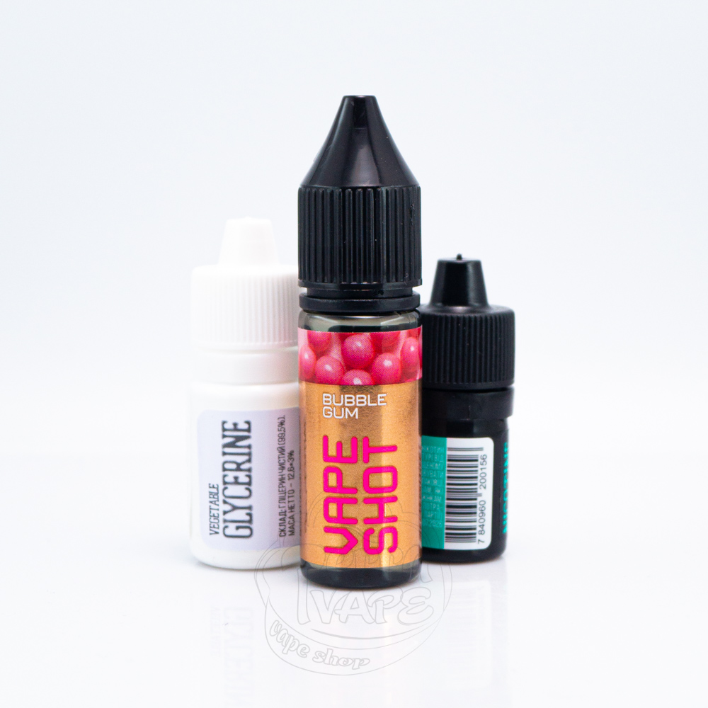 Vape Shot Salt Bubble Gum 15ml 65mg - це набір для створення жижки зі смаком солодкої жувальної гумки, яку ми всі любили надувати в дитинстві.