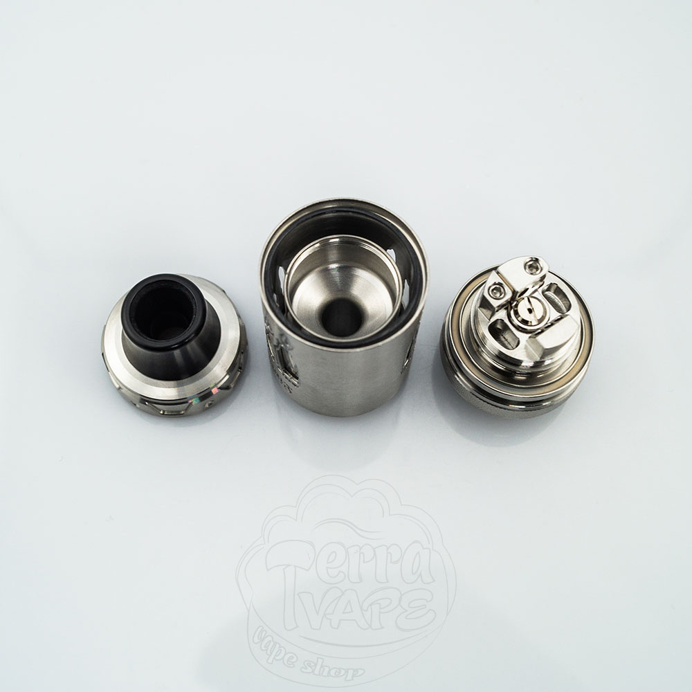 Обдув – це те місце, де починаються цікаві речі з Lindwurm RTA. Основна частина повітряного потоку надходить із трьох отворів під кутом на передній стороні спіралі з додатковим бічним отвором на задній стороні, вифрезерованим у плюсовій стійці. Повітря також проходить під спіраллю, за допомогою знімного піна (жиклера).