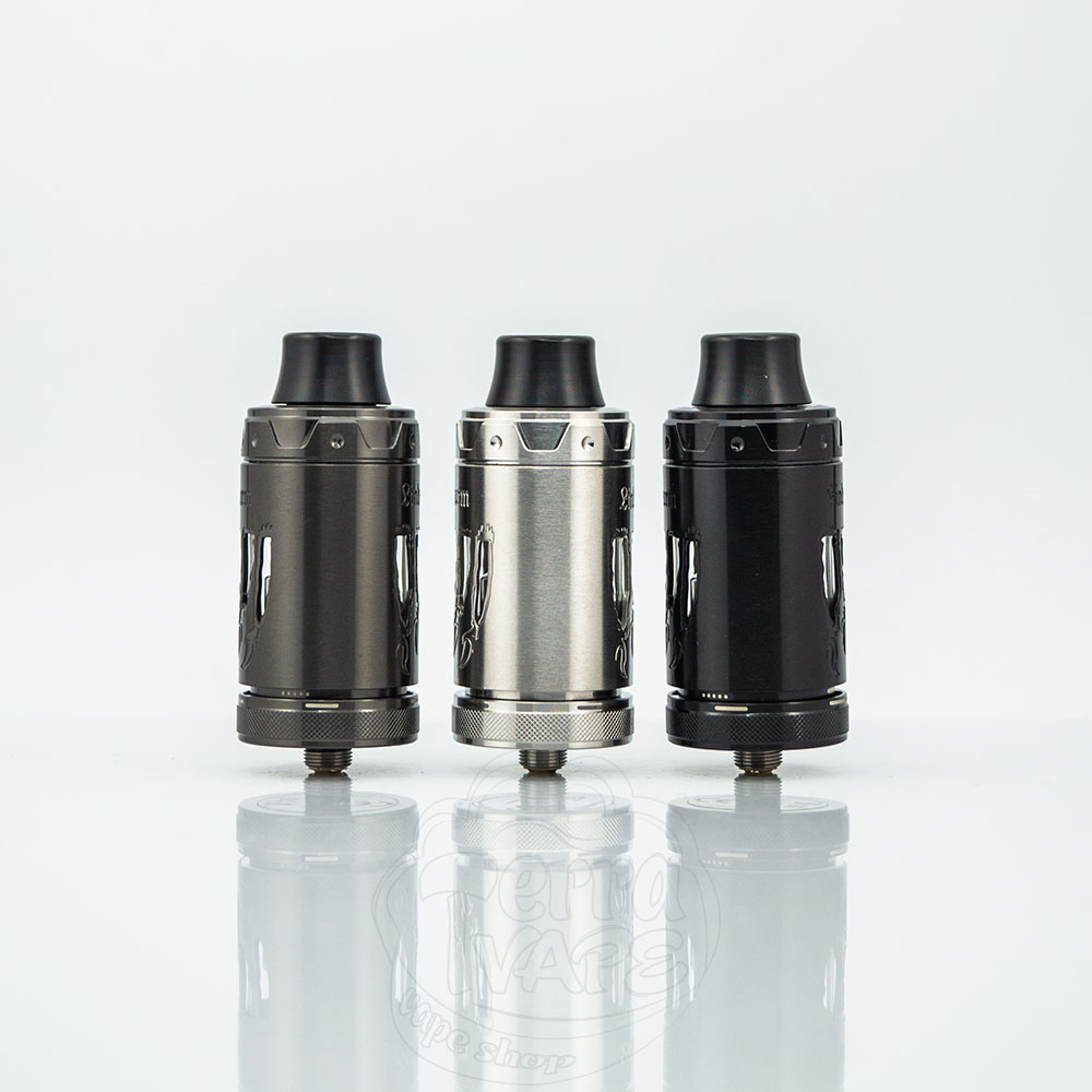 Vapefly Lindwurm RTA – это односпиральный бак от компании Vapefly. Диаметр базы составляет 25.2мм, а резервуар может вместить до 5мл жидкости для электронных сигарет. Вверху расположился съемный 810 дрип-тип, который при необходимости можно заменить на 510 с комплектным адаптером. Атомайзер поражает своей универсальностью, так как его можно использовать под сигаретную и свободную затяжку, благодаря продуманной системе обдува.