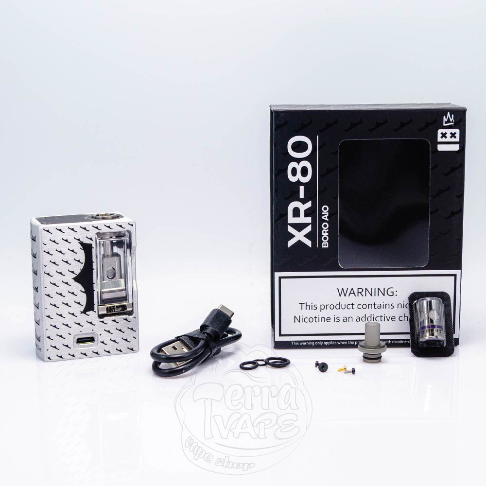 Vaperz Cloud X MNCH XR-80 DNA80c Boro Kit - це AIO боро-пристрій на чіпсеті DNA80c від компанії Vaperz Cloud в колаборації з польським виробником Monarchy. В собі містить вбудований акумулятор ємністю 3000mAh та заряджається через порт Type-C. Максимальну потужність видає 80W. Пристрій оснащений кольоровим 0.85" TFT дисплеєм та має сумісність з налаштуванням через програмне забезпечення EScribe від Evolv.
