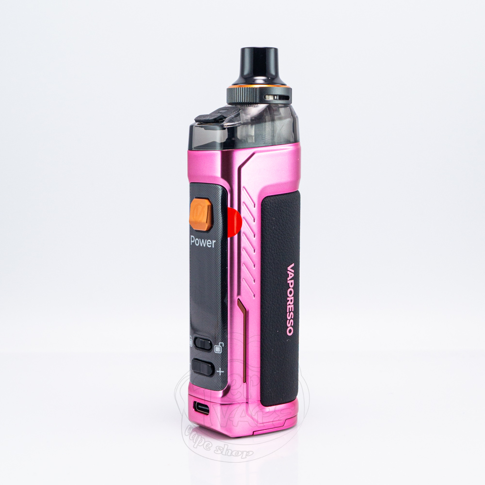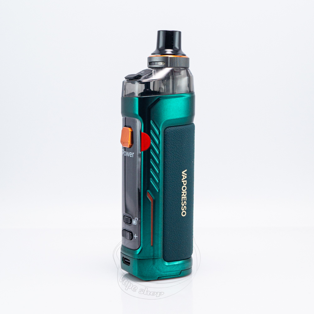 Vaporesso Armour GS Pod Mod 80W Kit - це pod-мод від відомої у галузі вейпінгу компанії Vaporesso. Він підтримує потужність до 80W, а живлення забезпечує змінний акумулятор формату 18650, який потрібно купляти окремо від пристрою. За активацію відповідає кнопка. На корпусі присутній великий 0.96-дюймовий екран, за допомогою якого ви зможете зручно проводити налаштування вашої електронної сигарети.