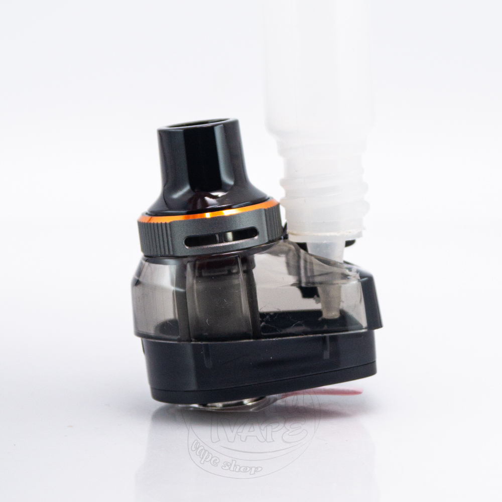 Картридж має об'єм 5мл та працює на змінних випарниках GTX, а тугість затяжки налаштовується за допомогою ергономічного кільця обдуву, яке вбудоване у корпус резервуару. Картридж заправляється зверху, тому ризик протікання рідини мінімальний. Запропоновані режими роботи дозволять оптимізувати паріння відповідно до тієї чи іншої ситуації.