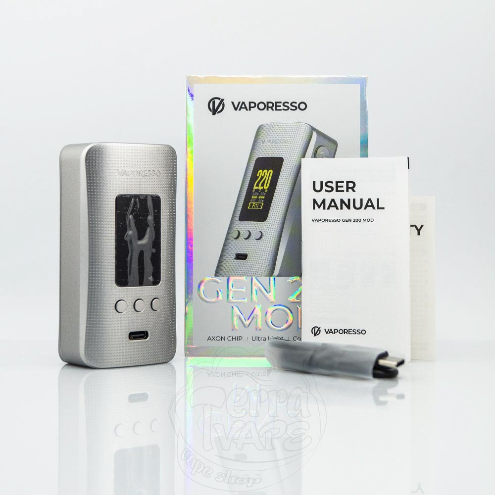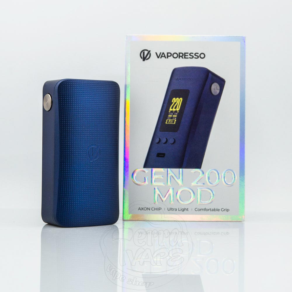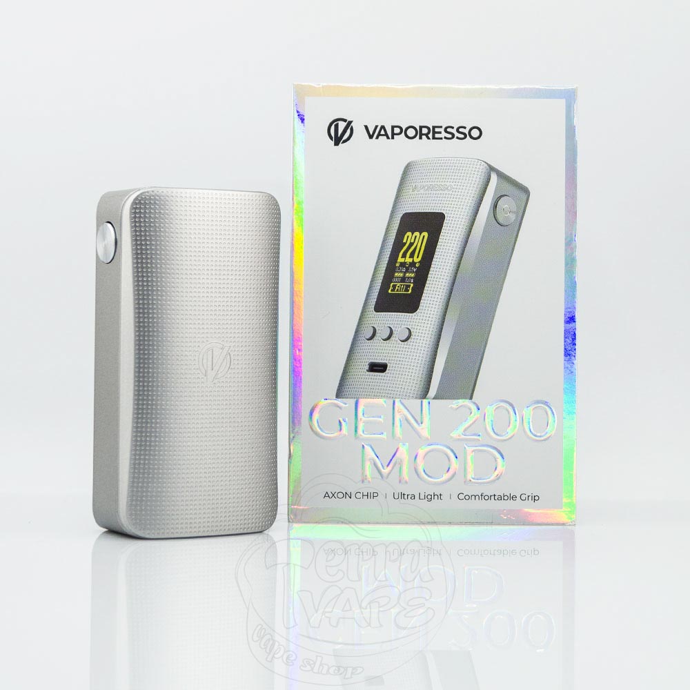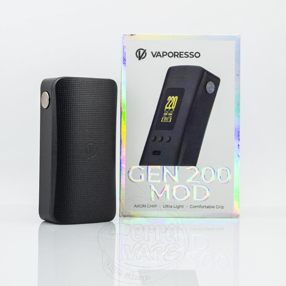 Vaporesso Gen 200 Mod 220W – це двоакумуляторний бокс-мод серії Gen від компанії Vaporesso. Працює від 2 батарей формату 18650 та має максимальну вихідну потужність 220Вт. Кольоровий TFT-дисплей та 4 кнопки на копусі забезпечують інтуїтивно-просте керування, а компактні розміри девайса забезпечують відмінну портативність та ергономіку.
